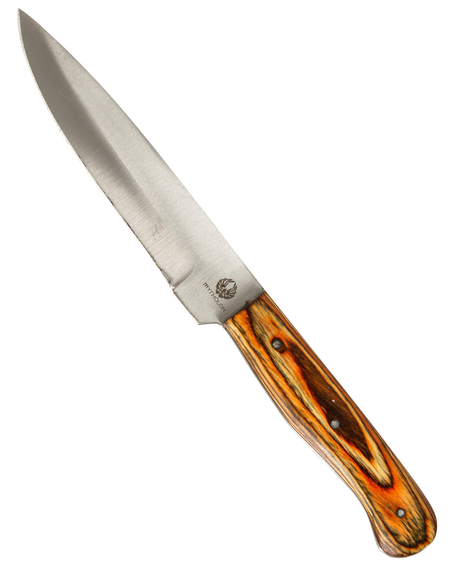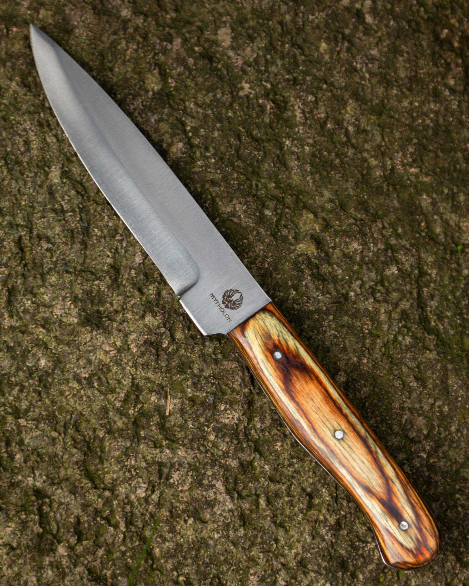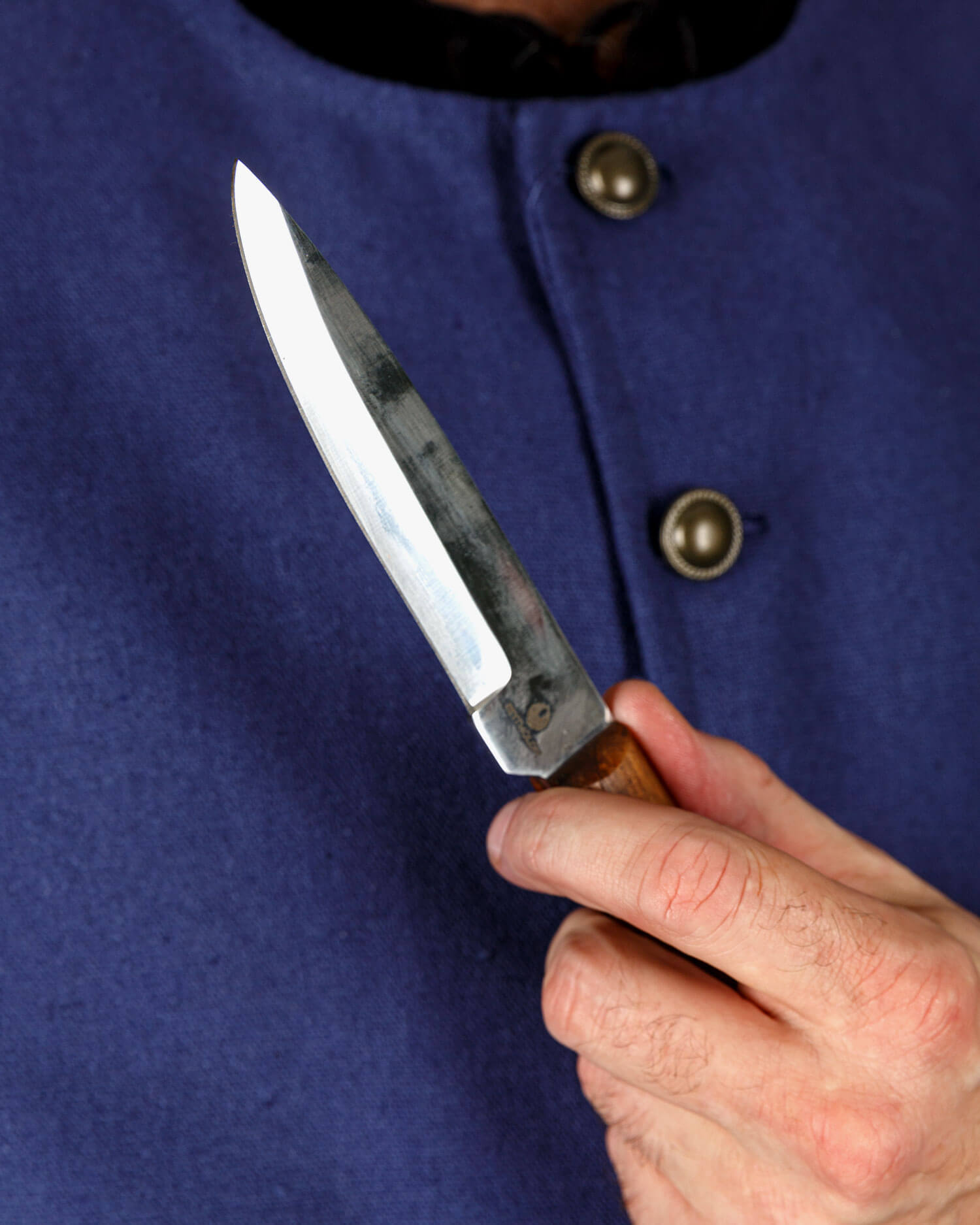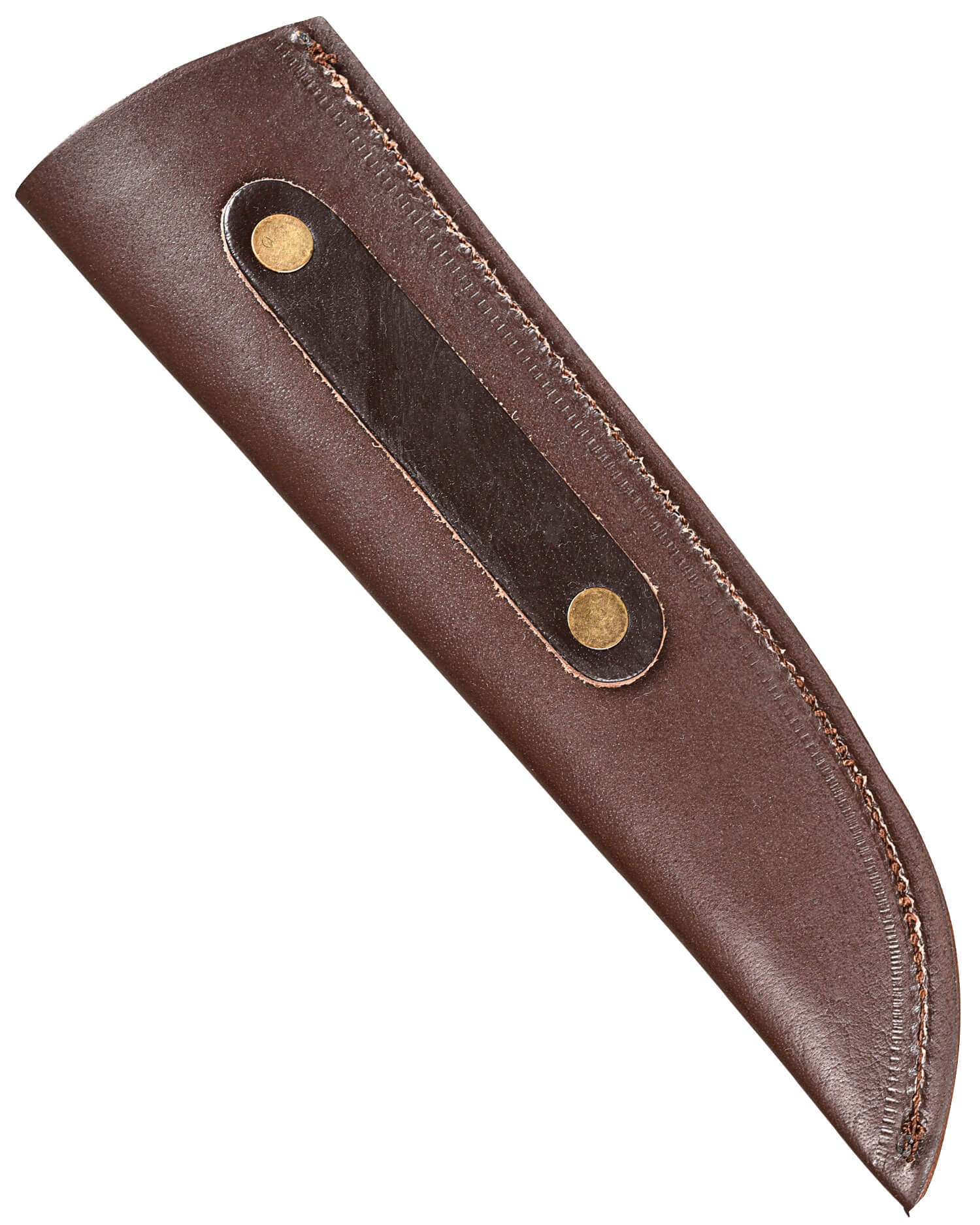 Mittelalterliches Messer mit passender Lederscheide und poliertem Holzgriff.