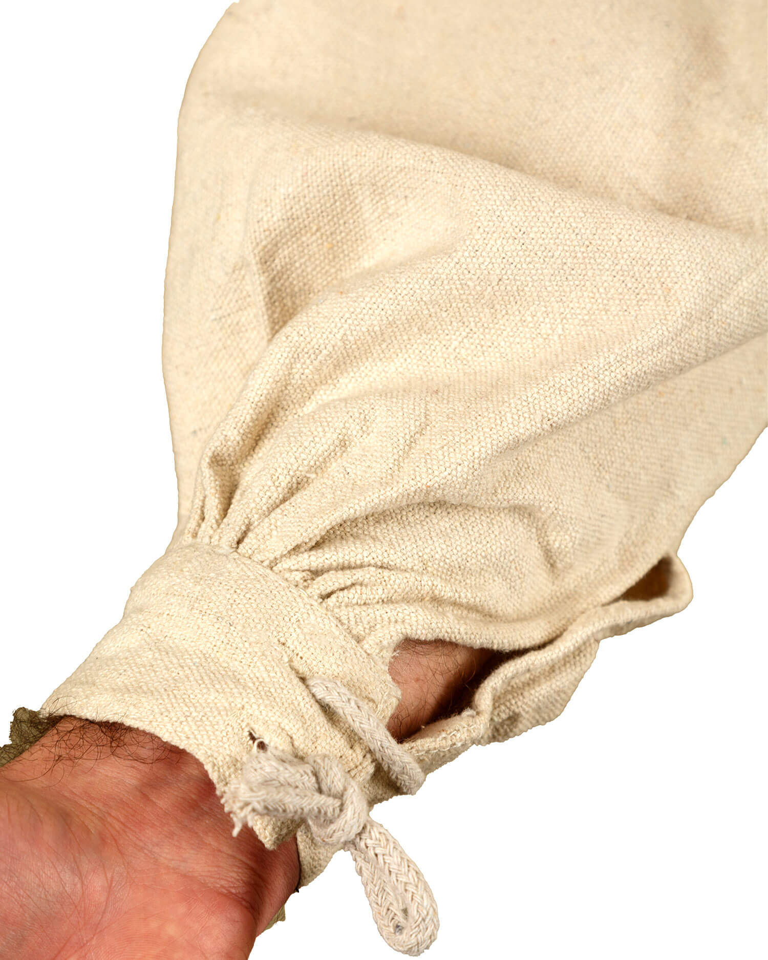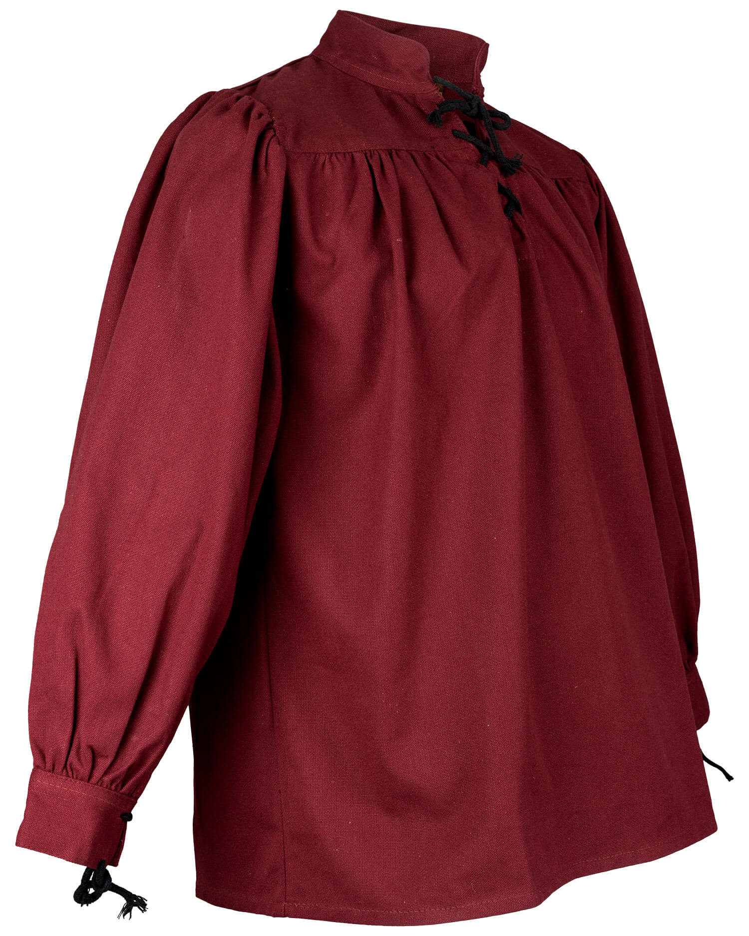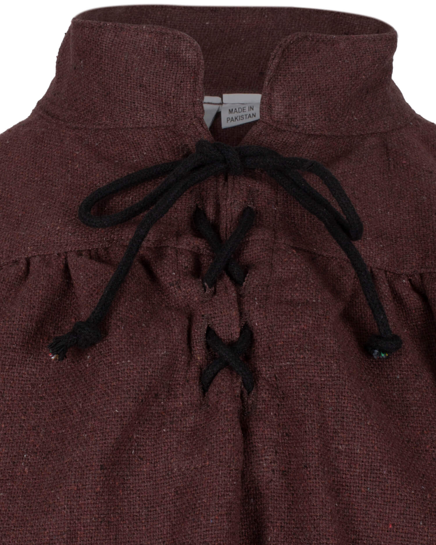Mittelalterliches Baumwollhemd aus atmungsaktiver Baumwolle mit grober Oberfläche. Weit geschnitten, mit Schnürung an Ärmeln und Kragen.