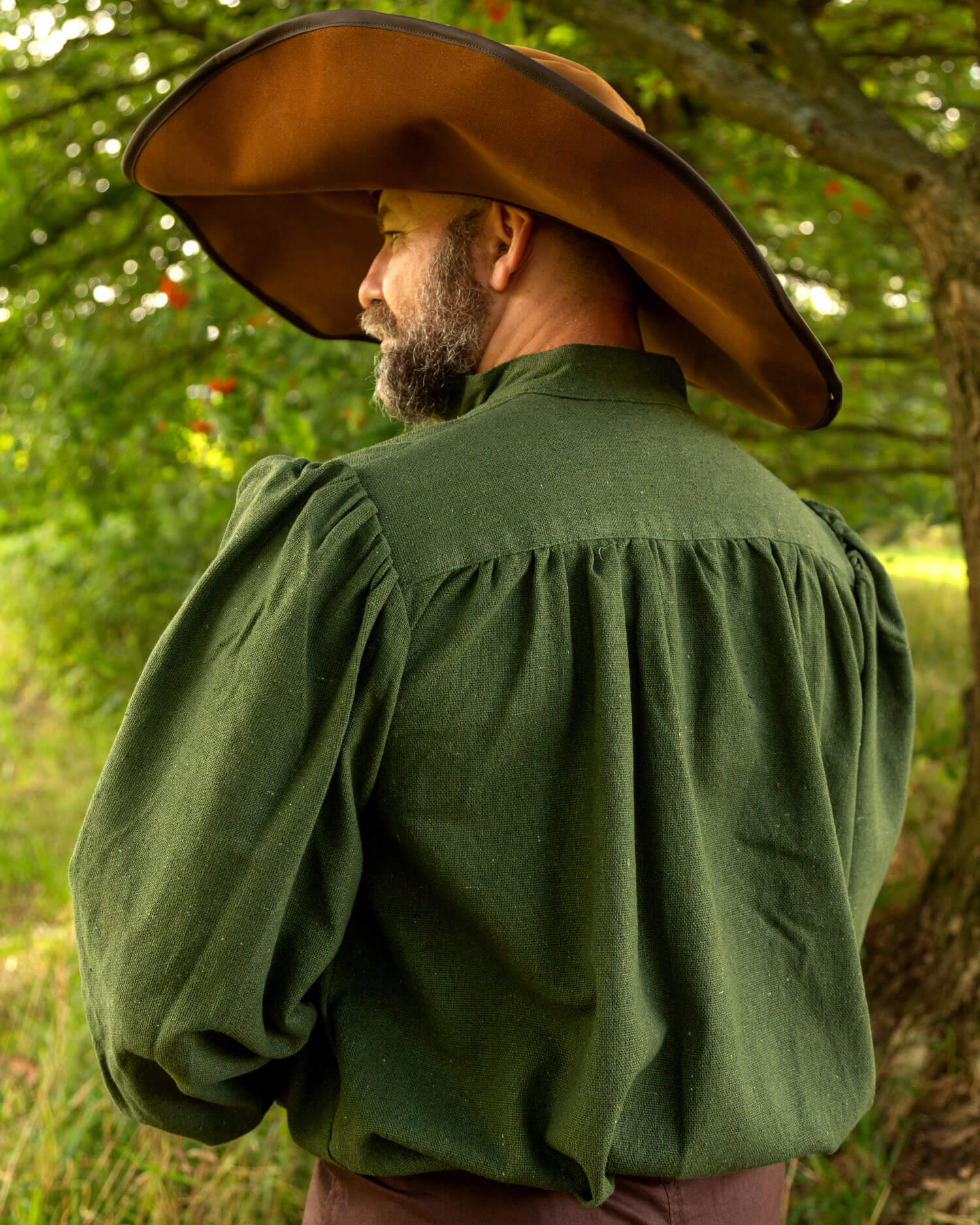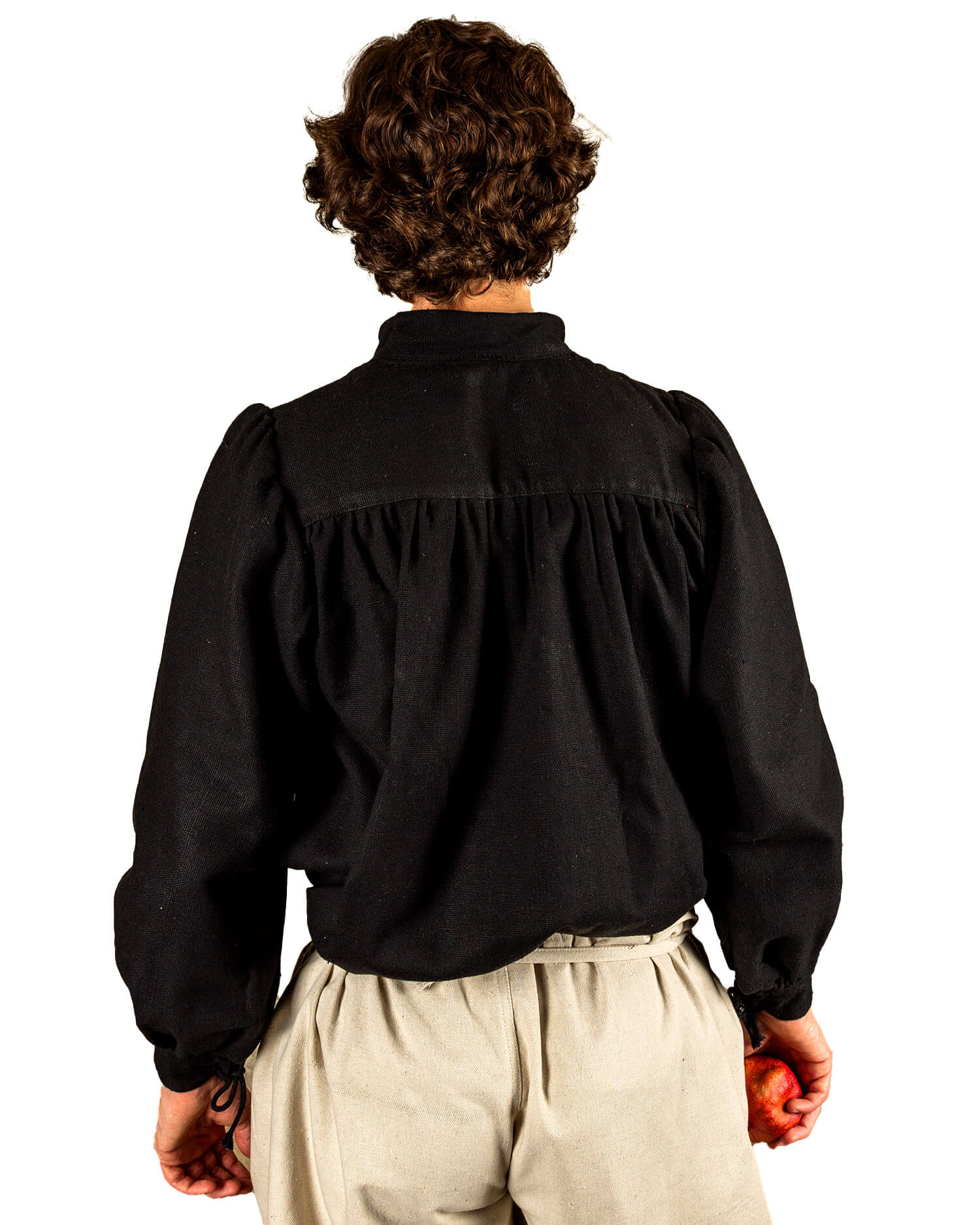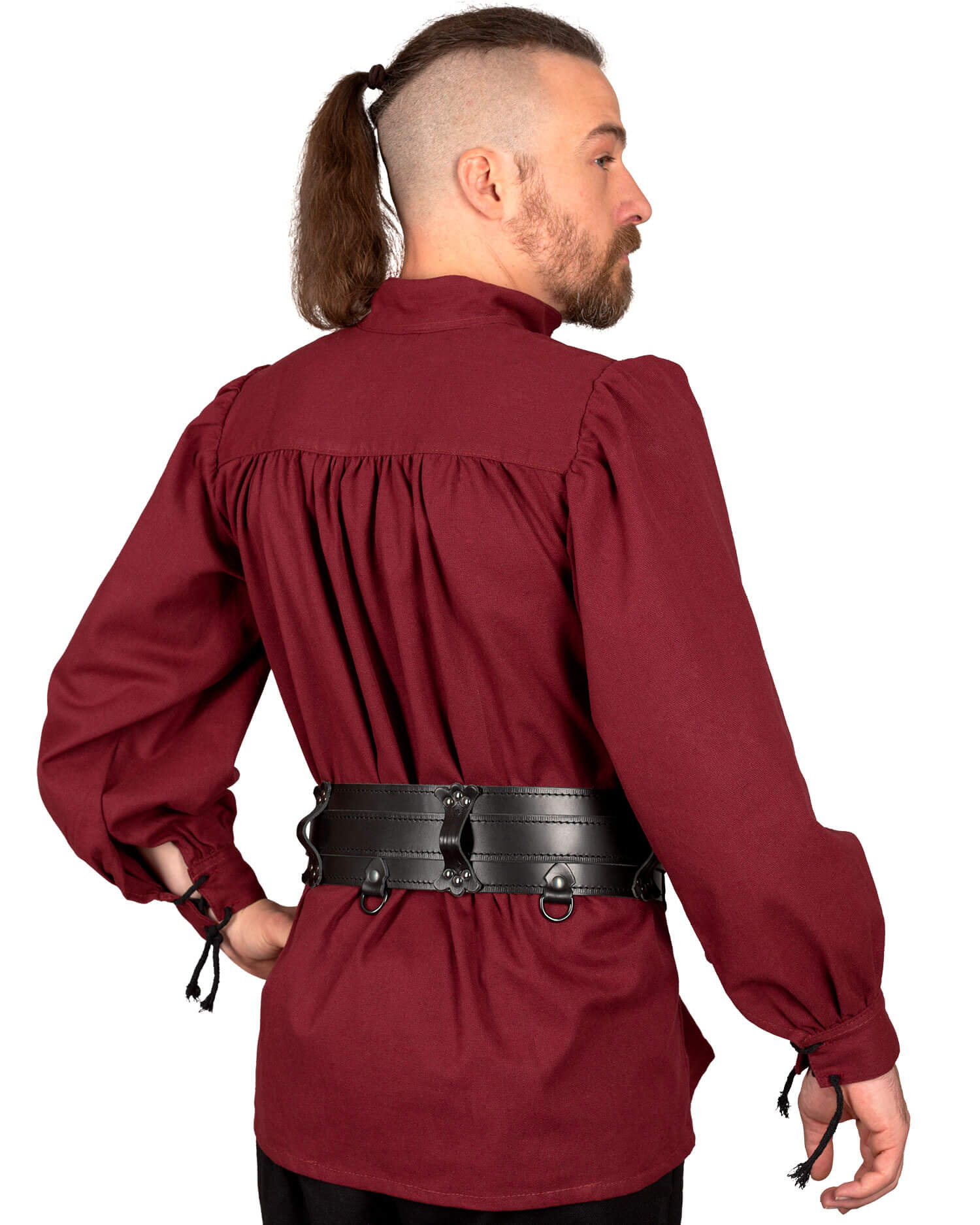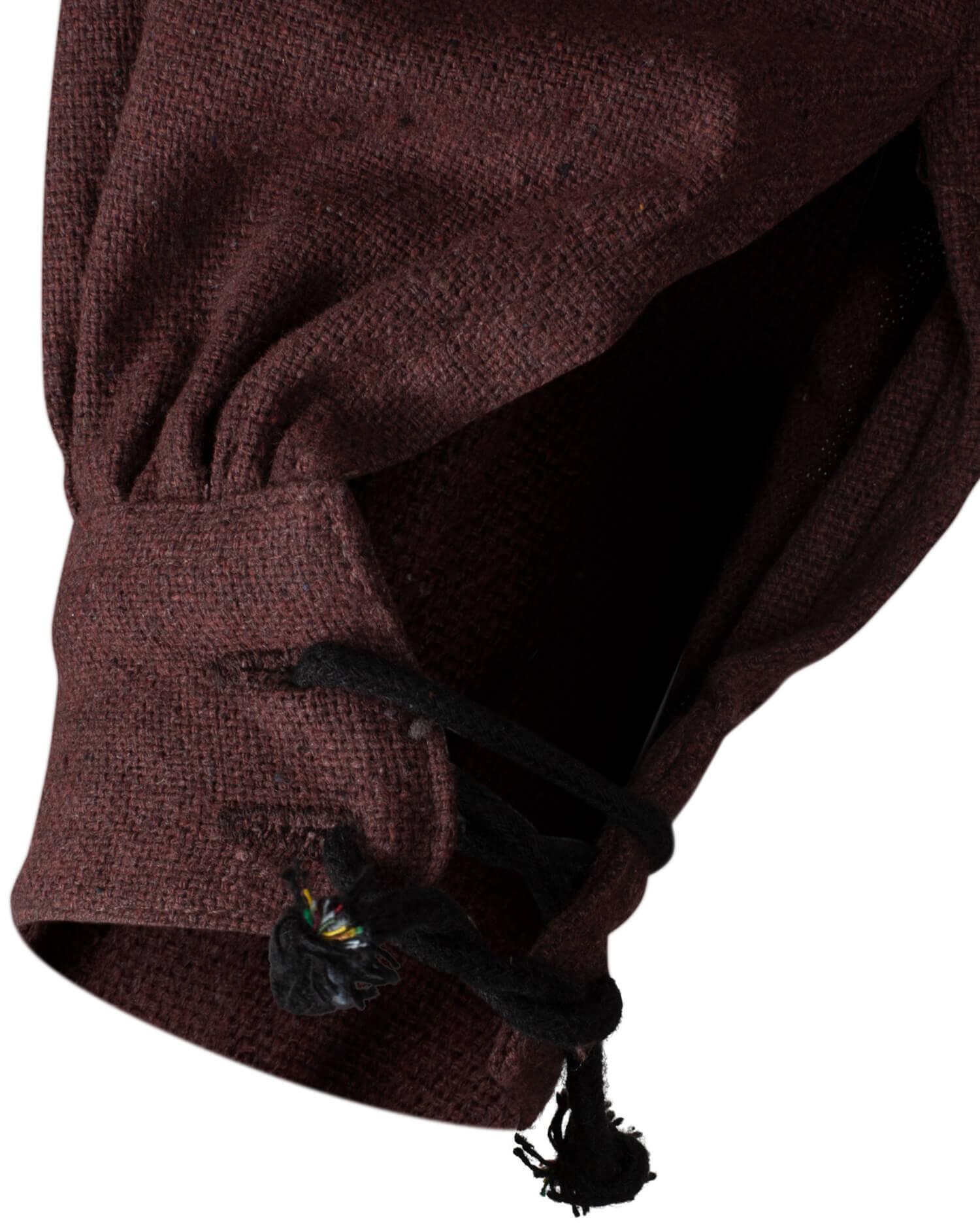 Mittelalterliches Baumwollhemd aus atmungsaktiver Baumwolle mit grober Oberfläche. Weit geschnitten, mit Schnürung an Ärmeln und Kragen.