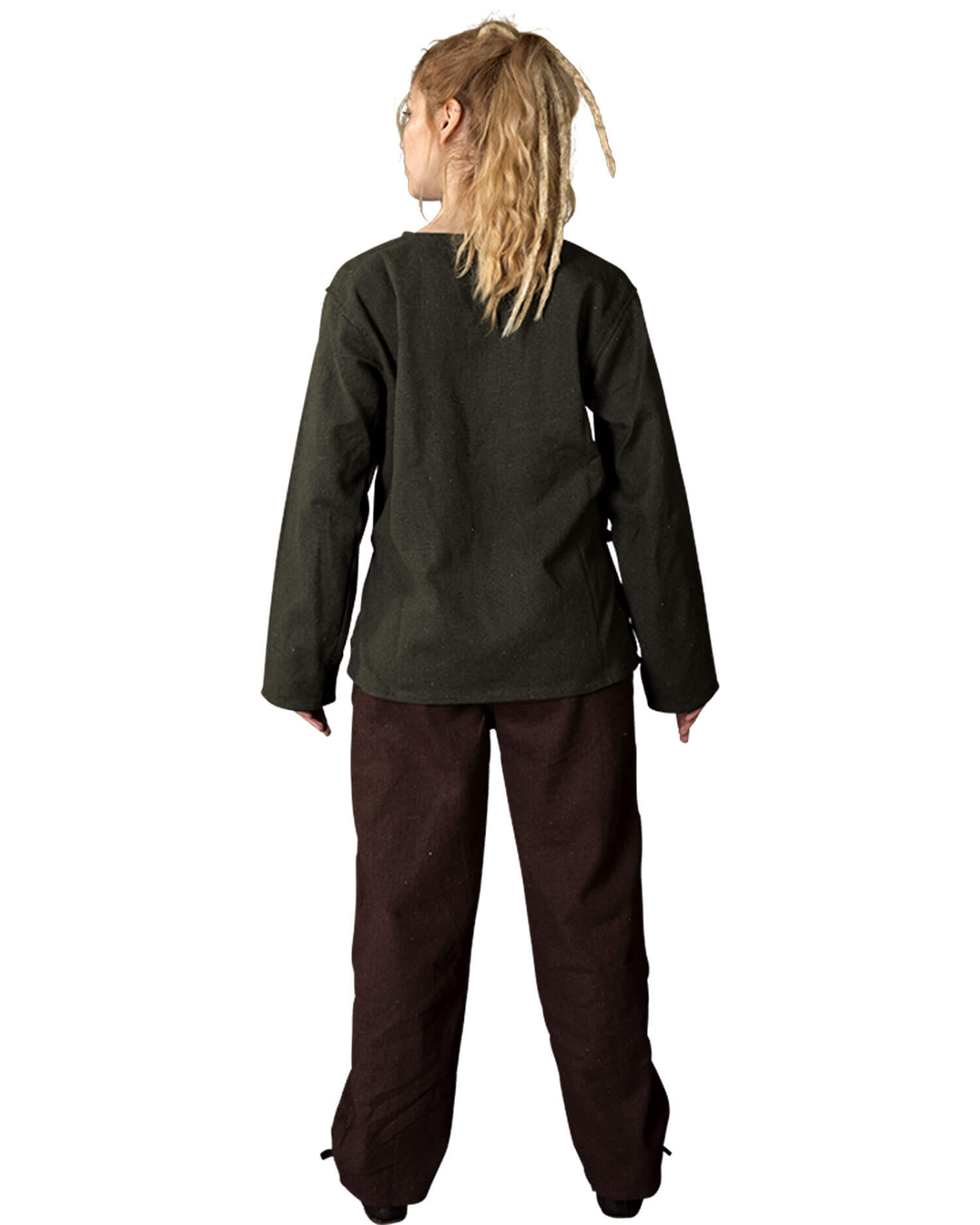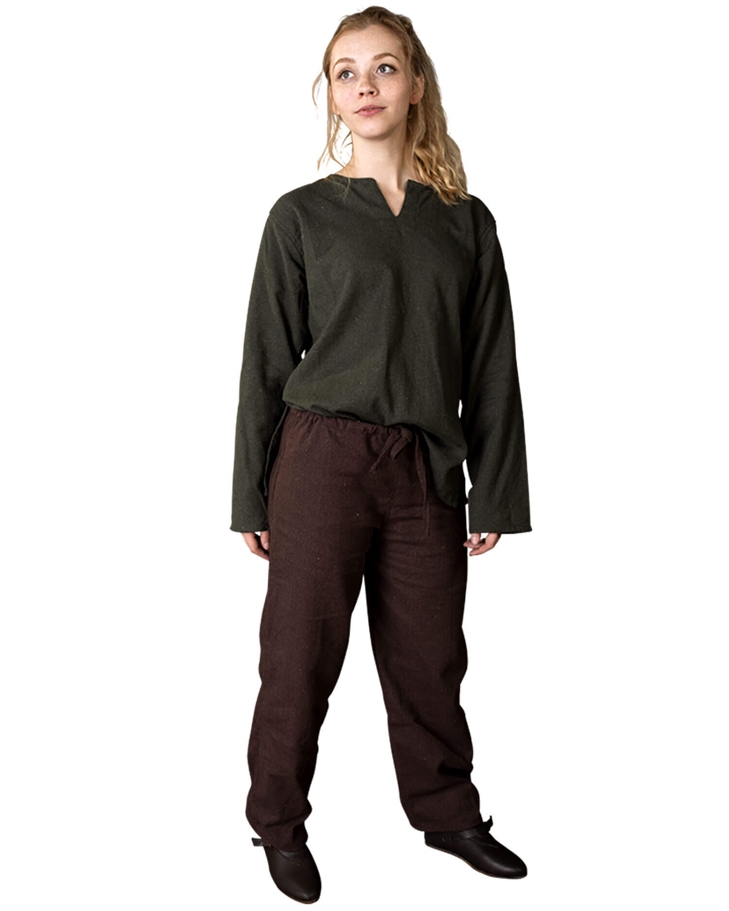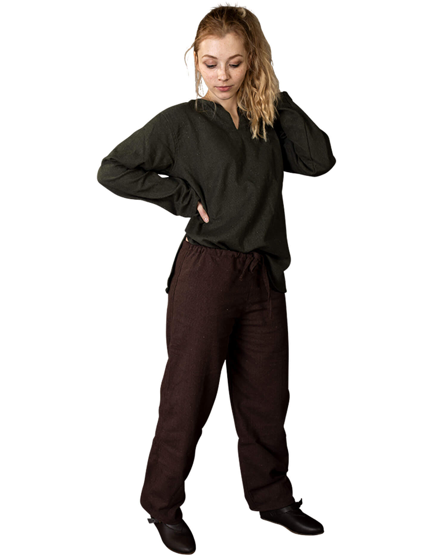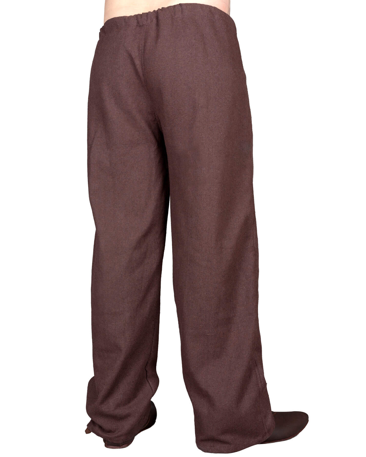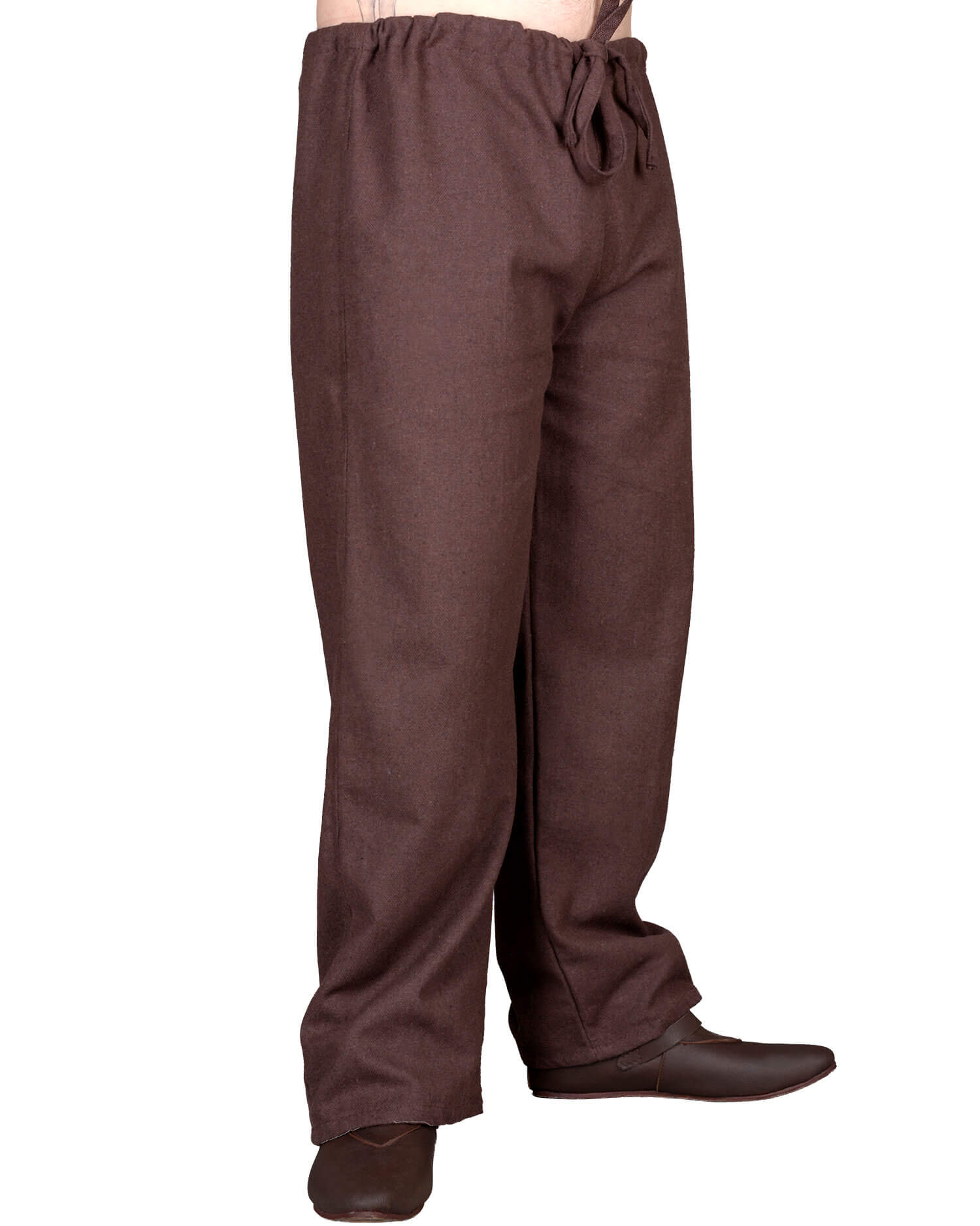 Schlicht geschnittene mittelalterliche Hose. Der großzügige Hosenbund wird mit einem Zugband geschlossen.
