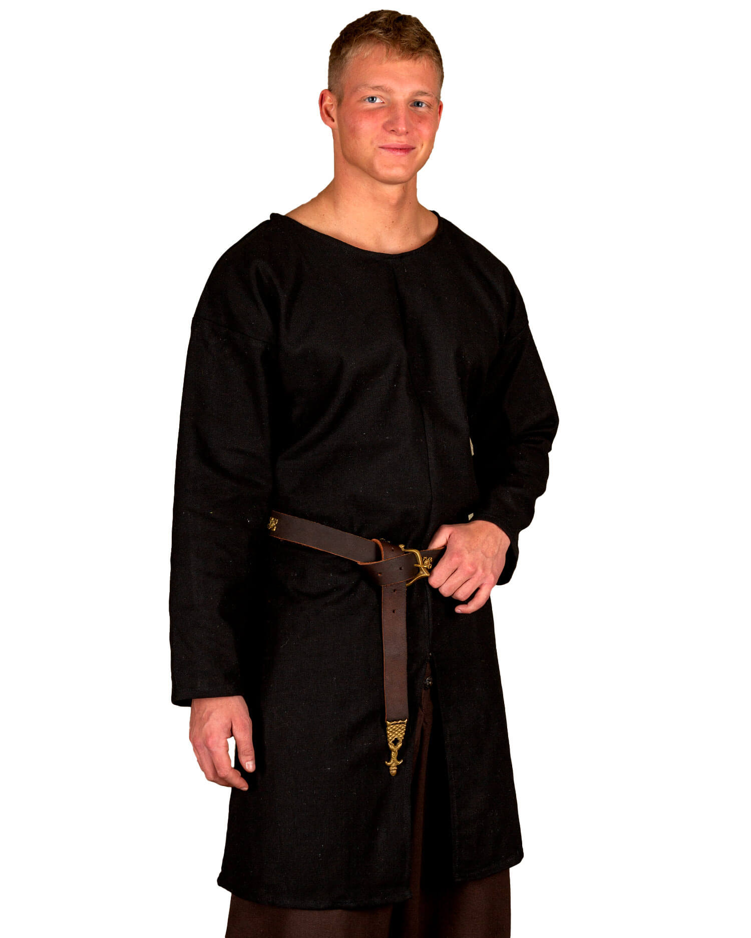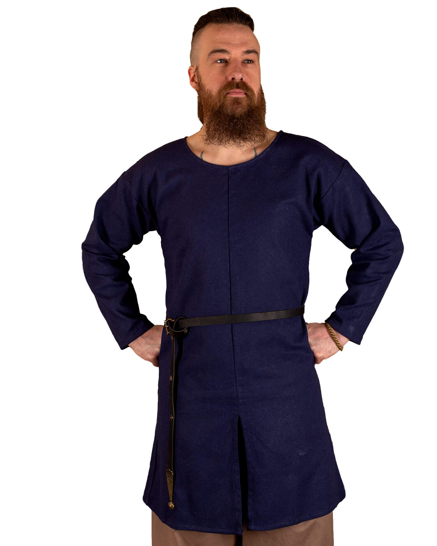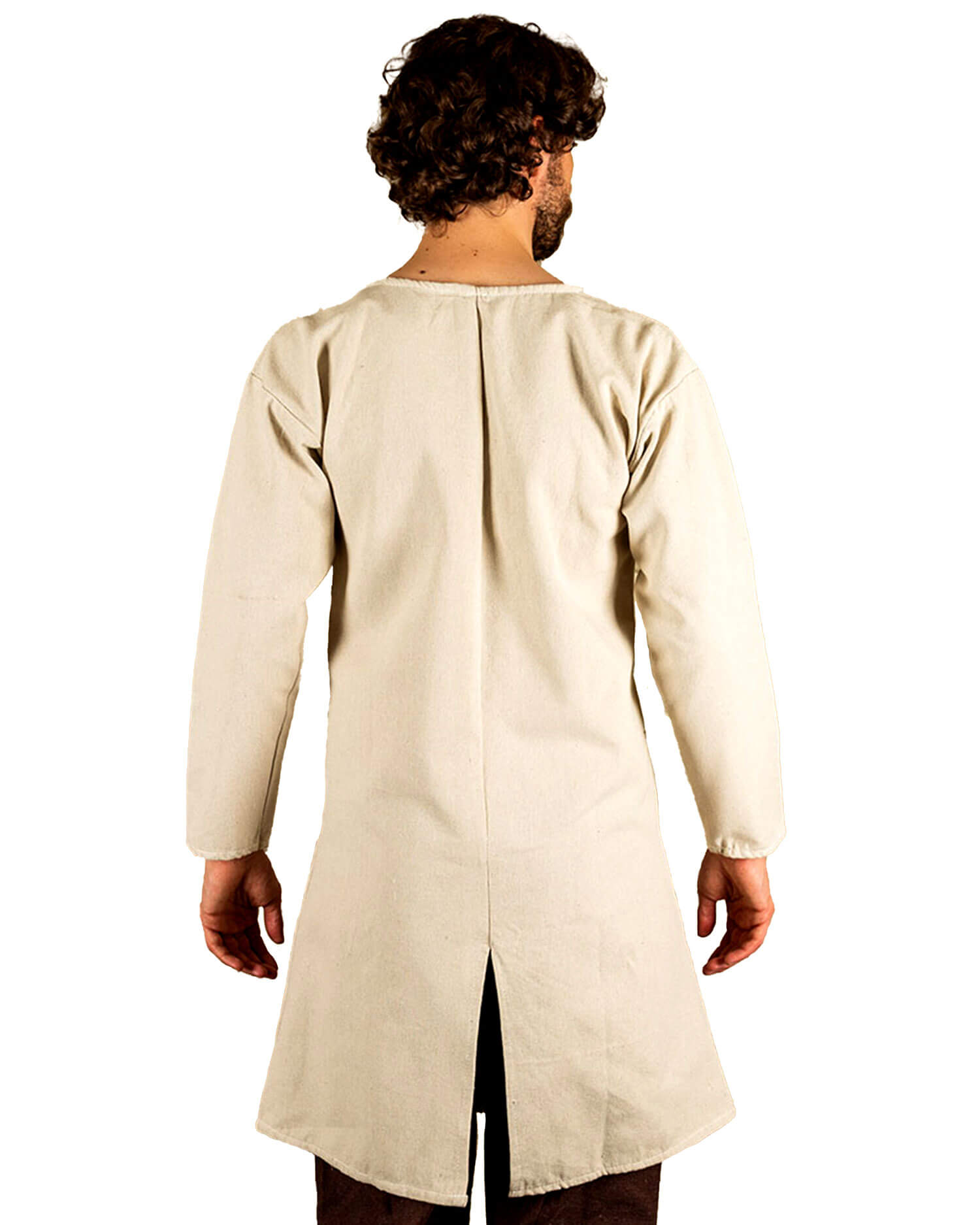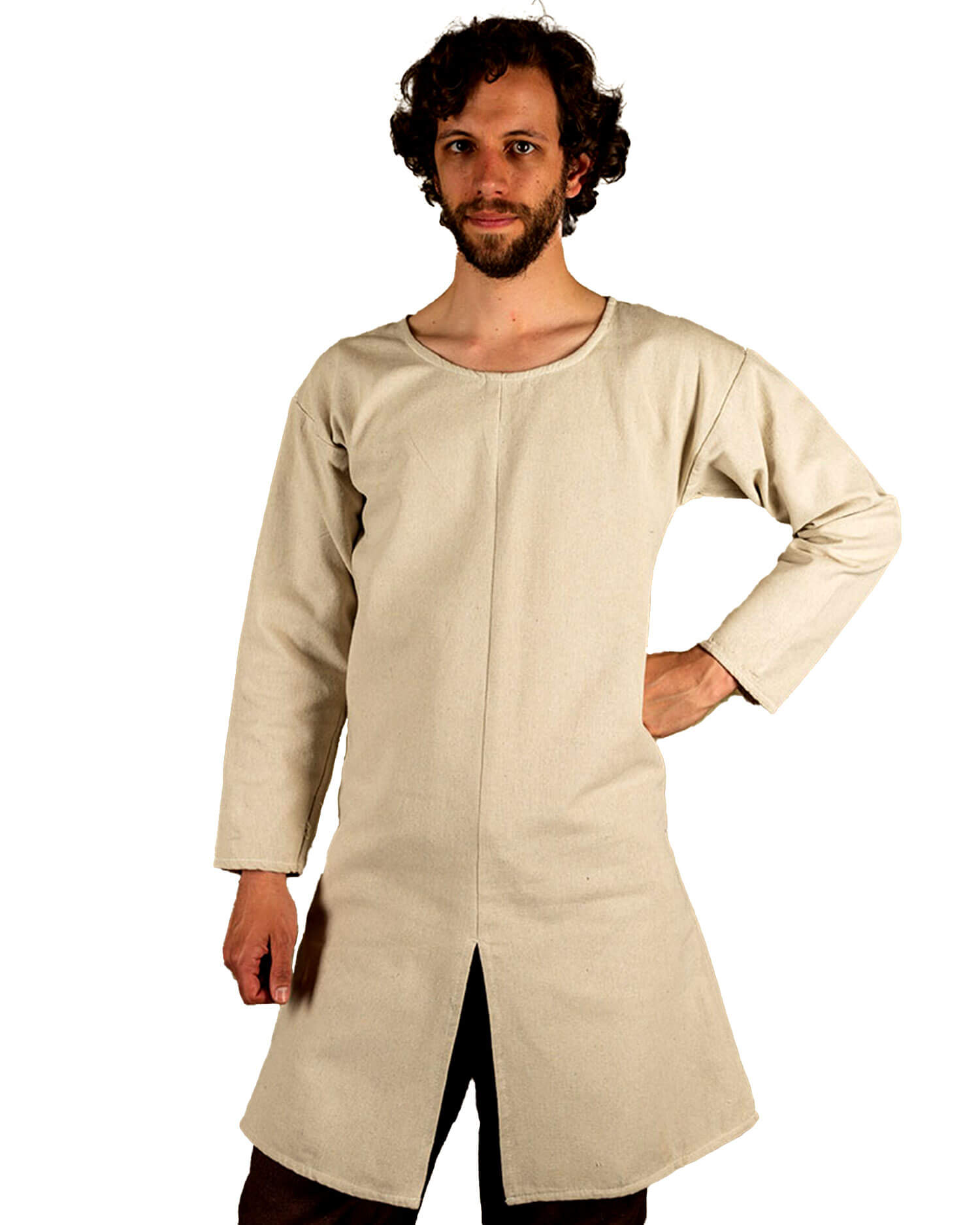 Mittelalterliche Tunika mit langen Ärmeln und rundem Halsausschnitt. Für mehr Beinfreiheit vorne und hinten geschlitzt.