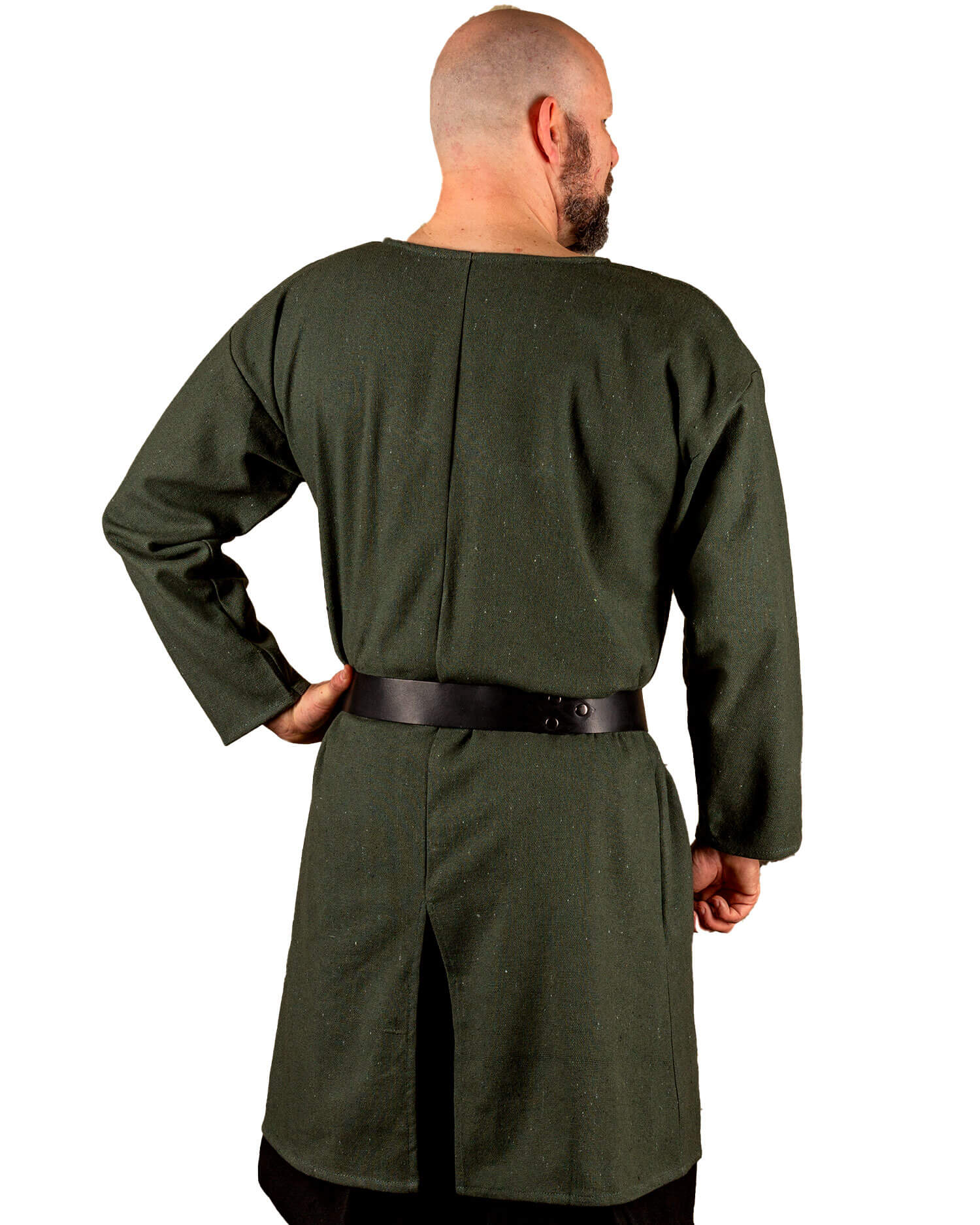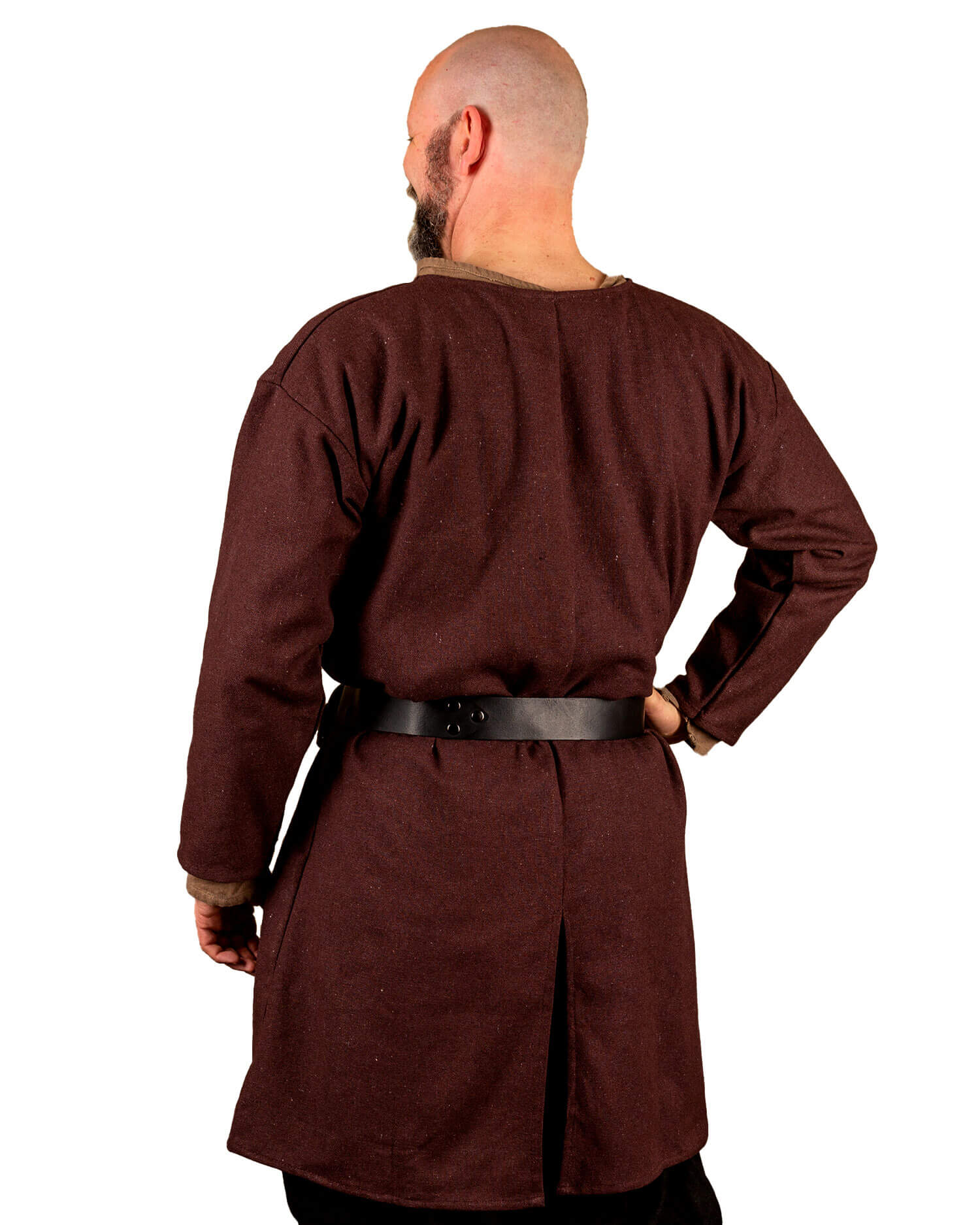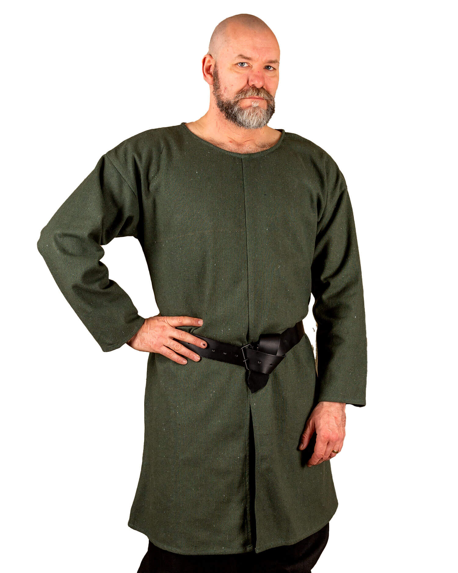 Mittelalterliche Tunika mit langen Ärmeln und rundem Halsausschnitt. Für mehr Beinfreiheit vorne und hinten geschlitzt.