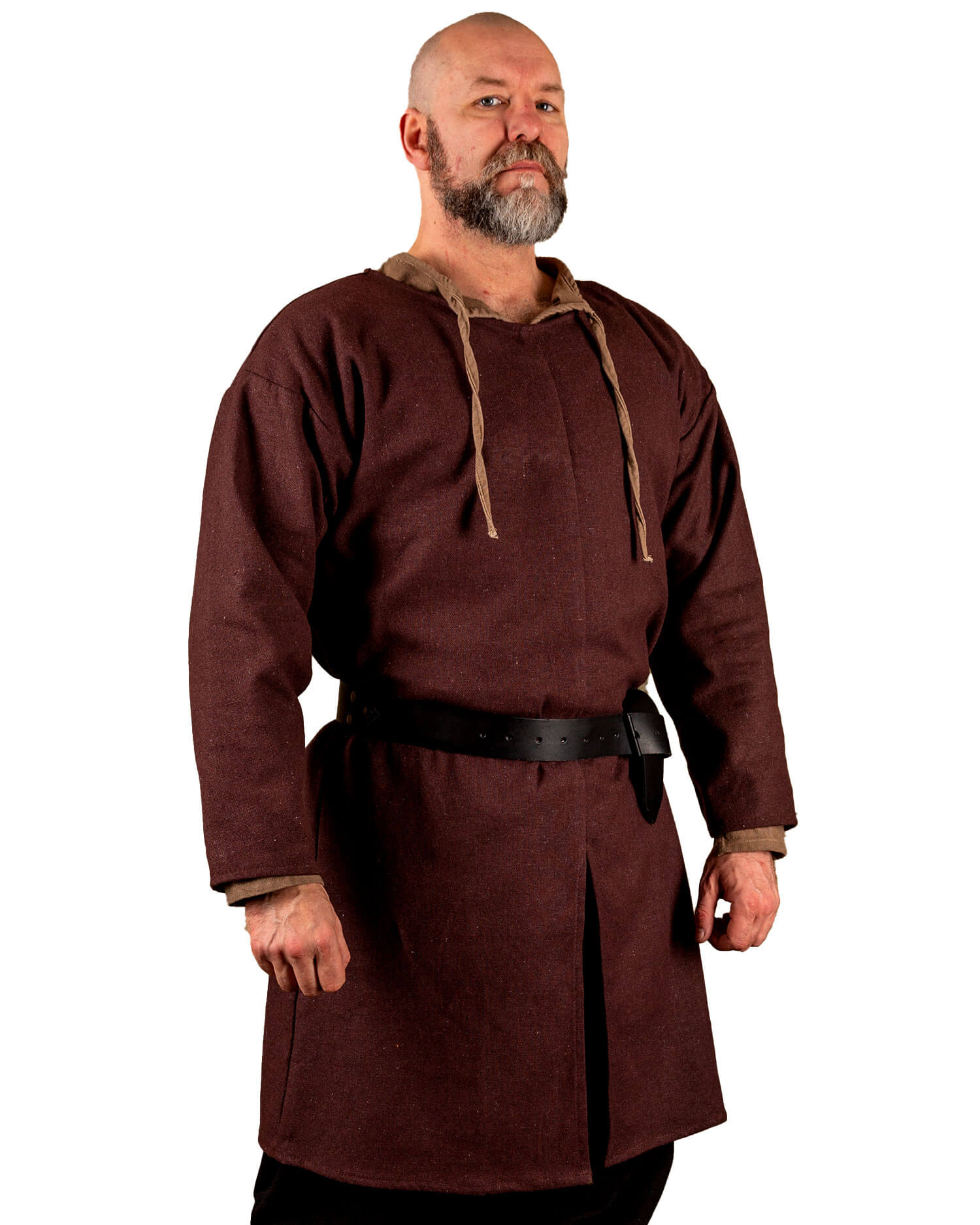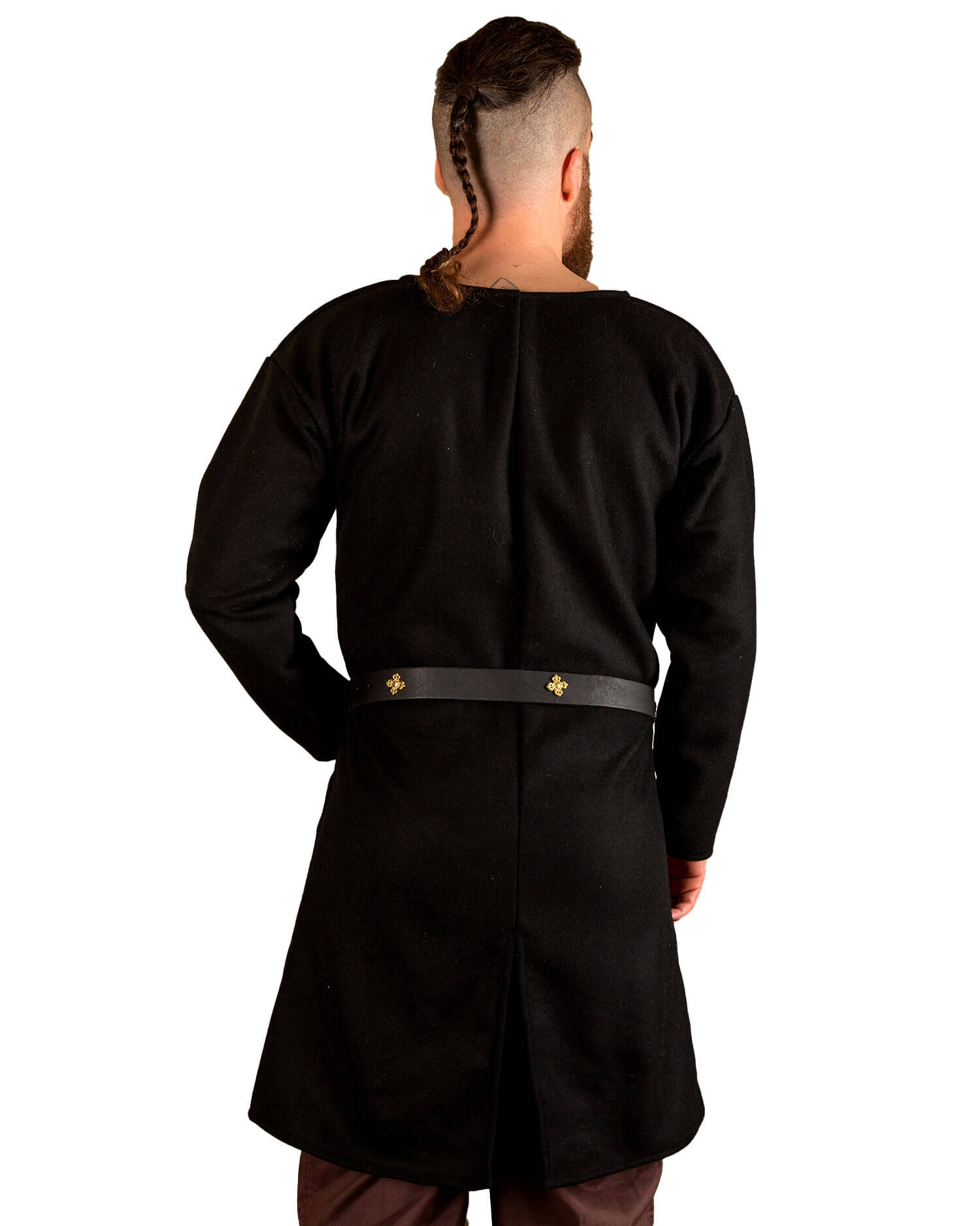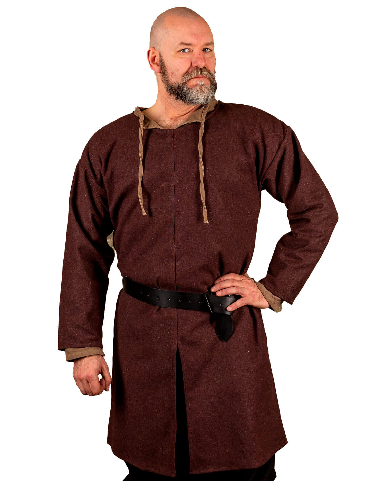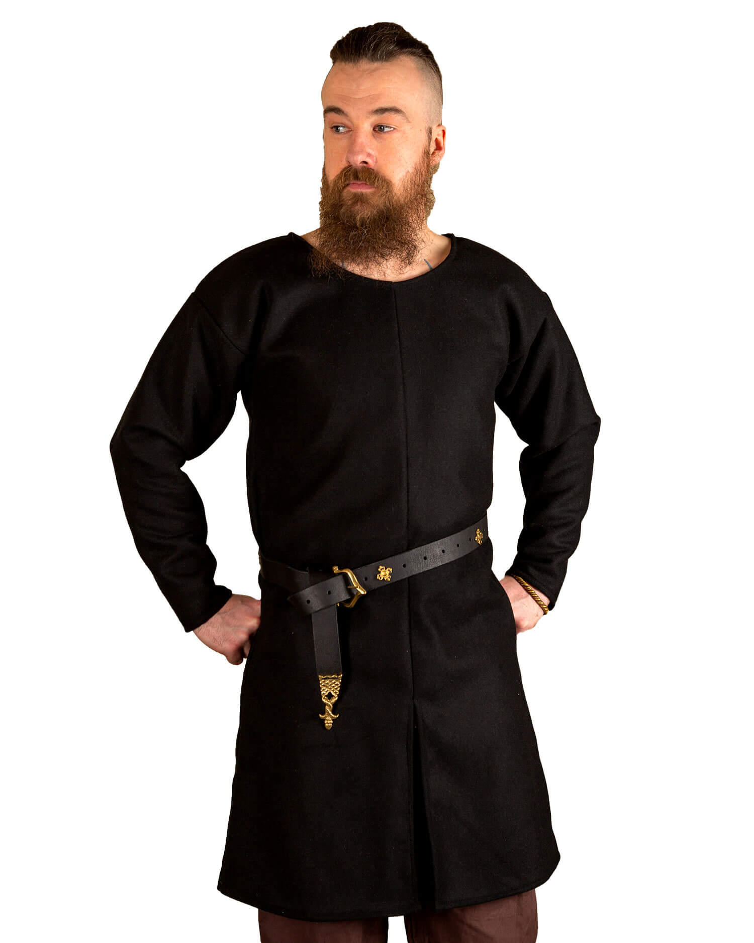 Mittelalterliche Tunika mit langen Ärmeln und rundem Halsausschnitt. Für mehr Beinfreiheit vorne und hinten geschlitzt.