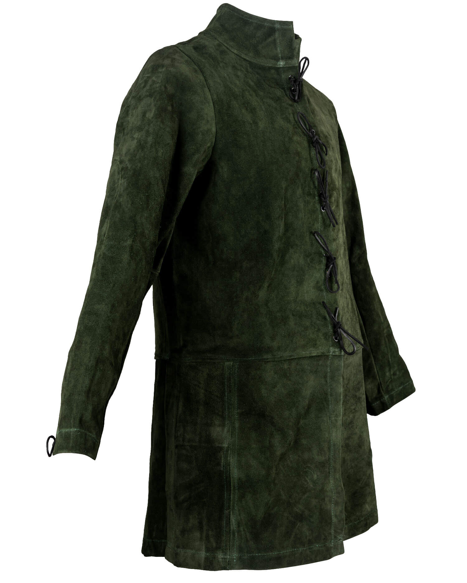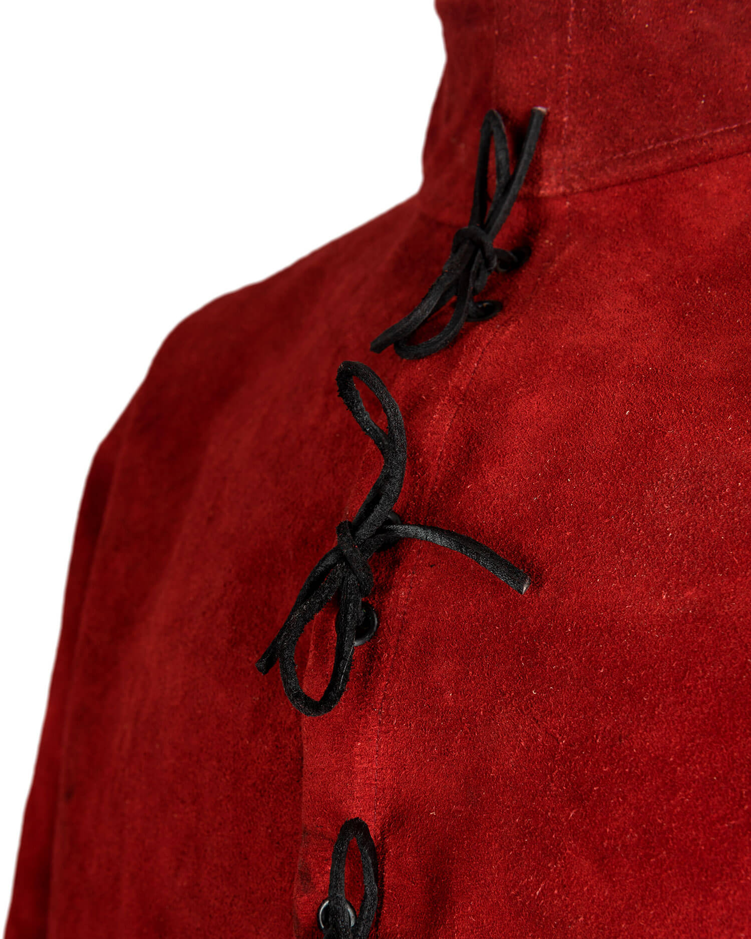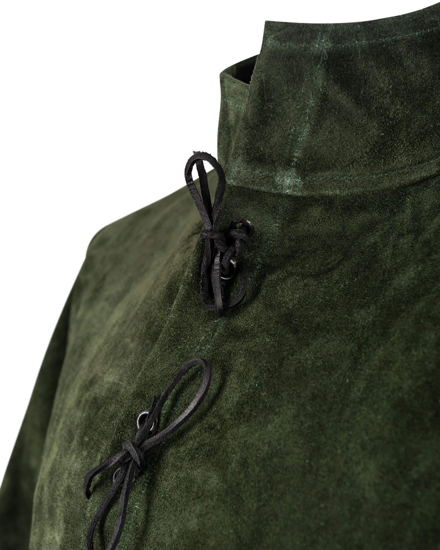 Mittelalterliche Jacke aus feinem Wildleder. Vorne mit Lederschnüren geschlossen.