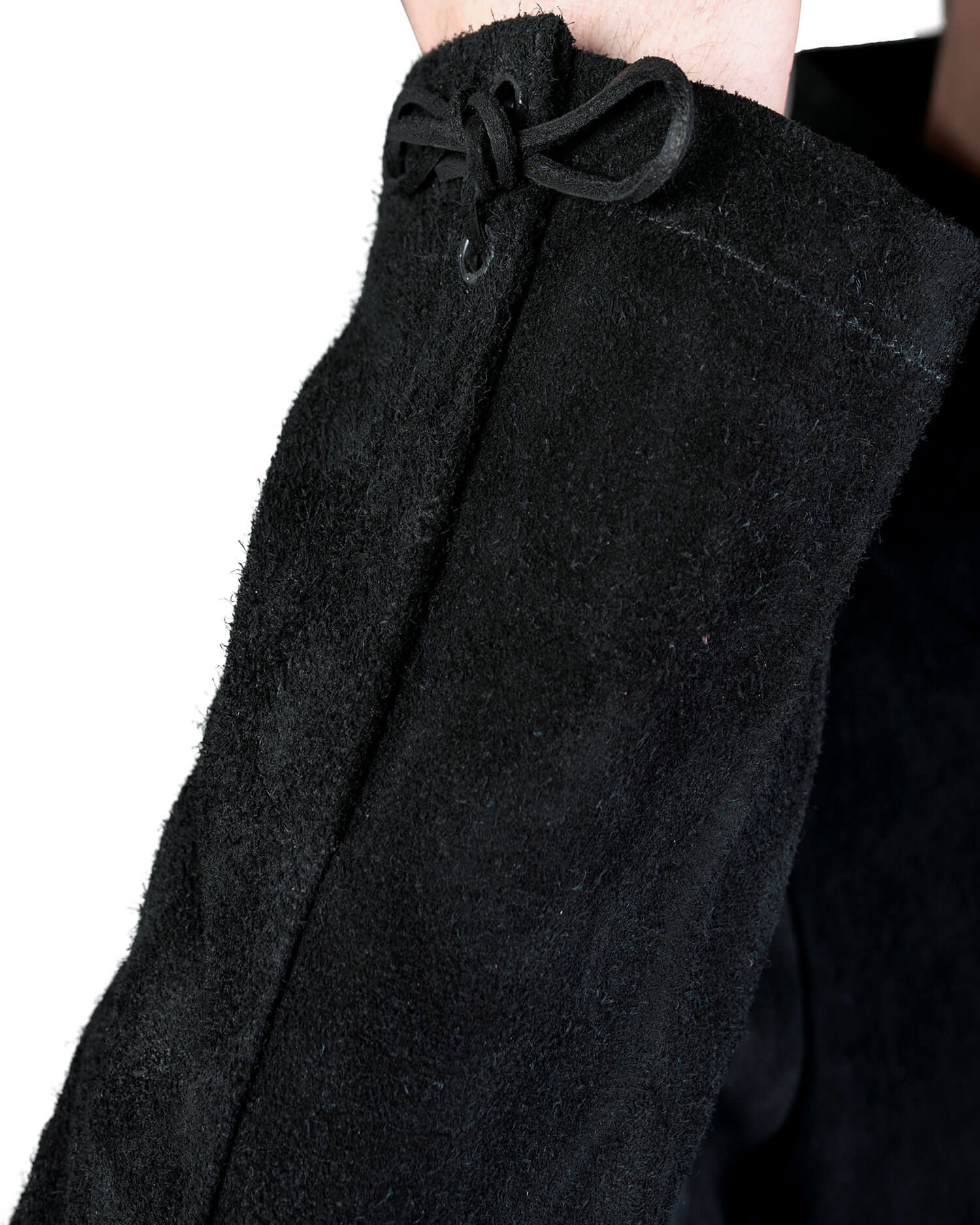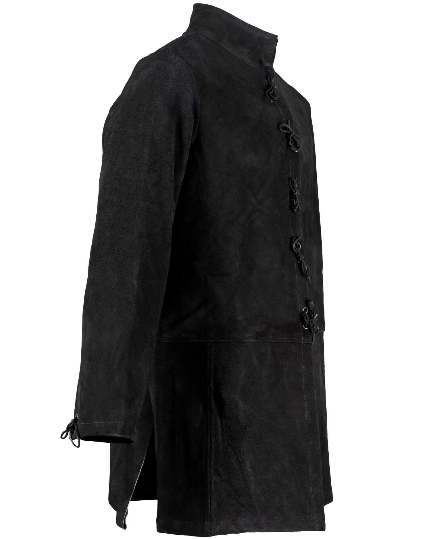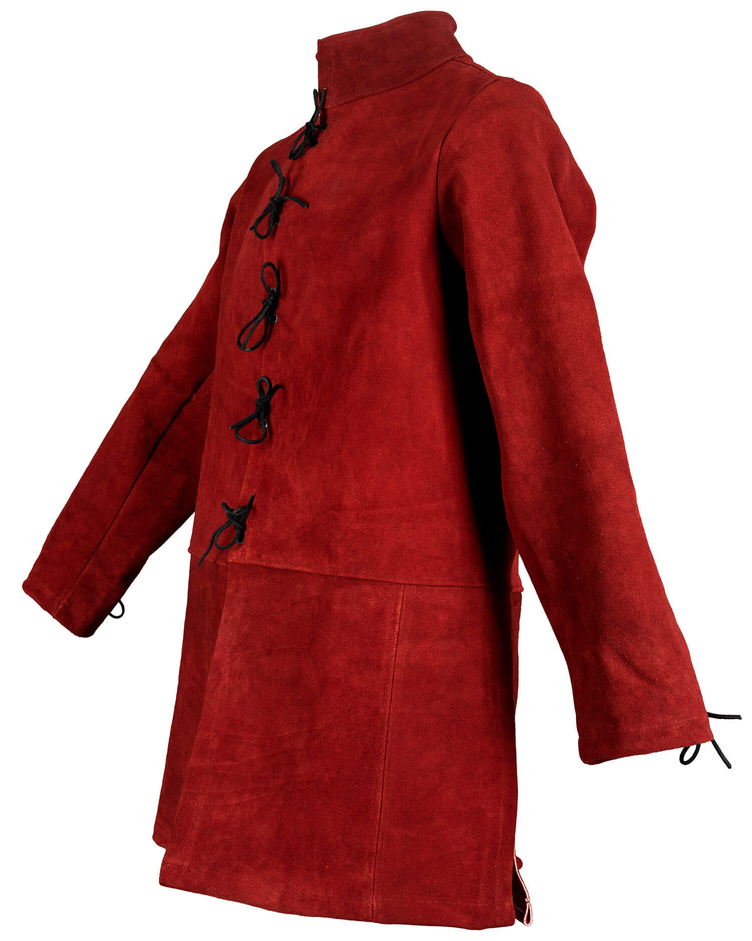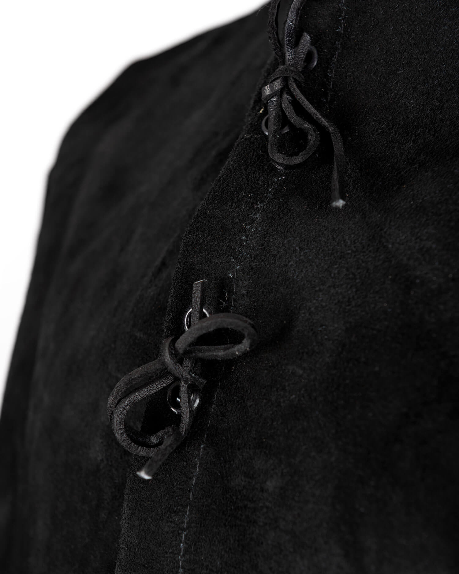 Mittelalterliche Jacke aus feinem Wildleder. Vorne mit Lederschnüren geschlossen.