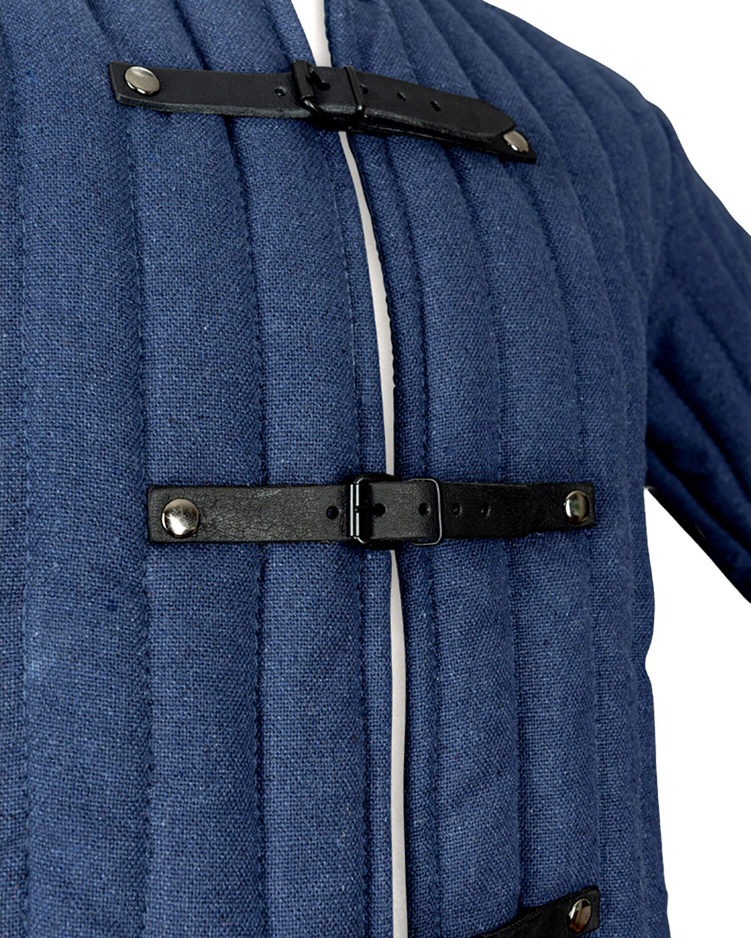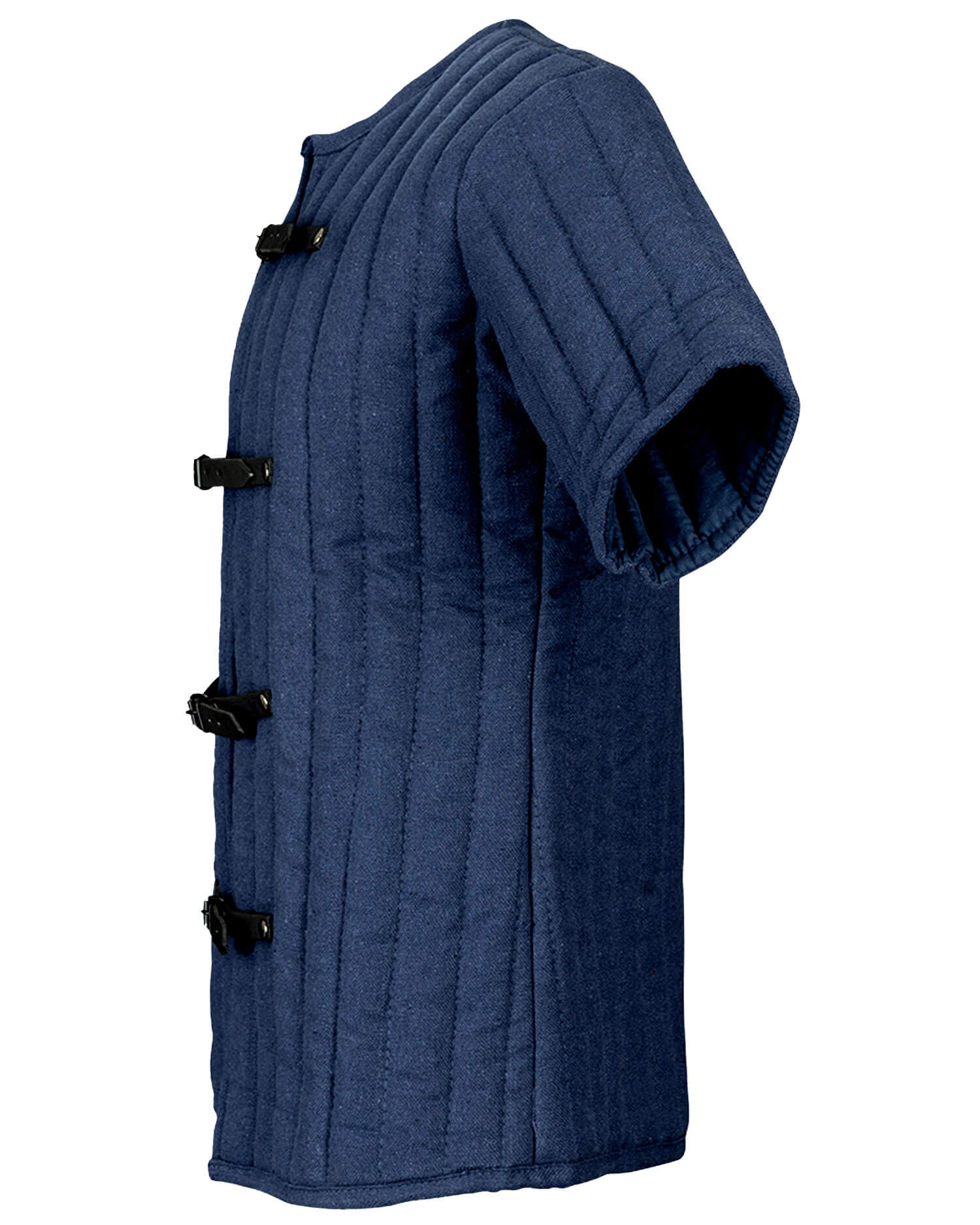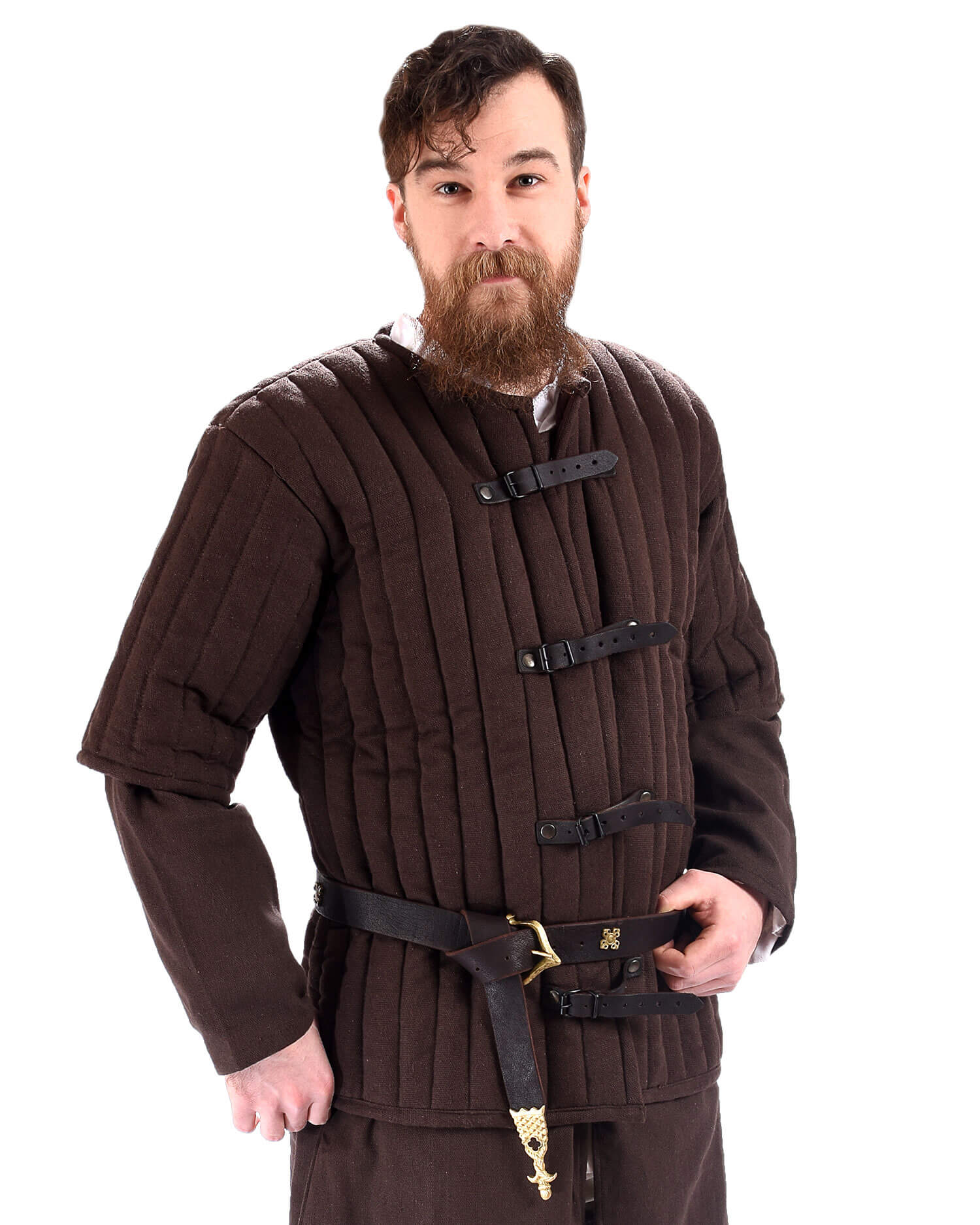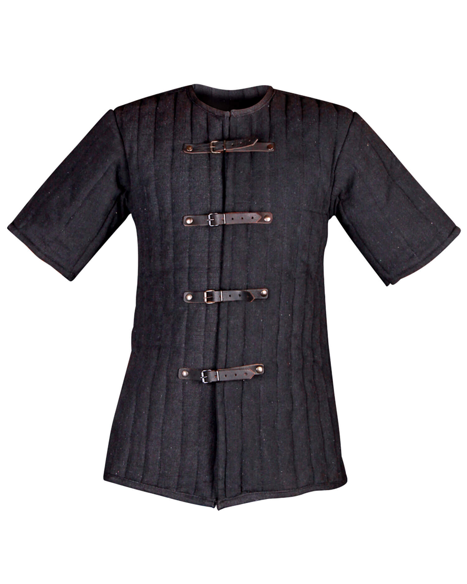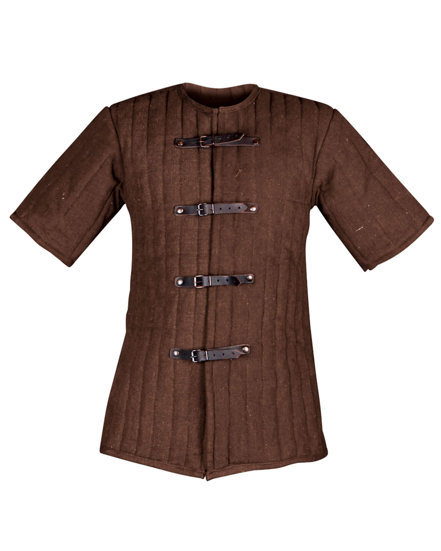 Einfacher Gambeson mit gerader Steppung und kurzen Ärmeln. Er wird mit vier Schnallen an der Vorderseite geschlossen.