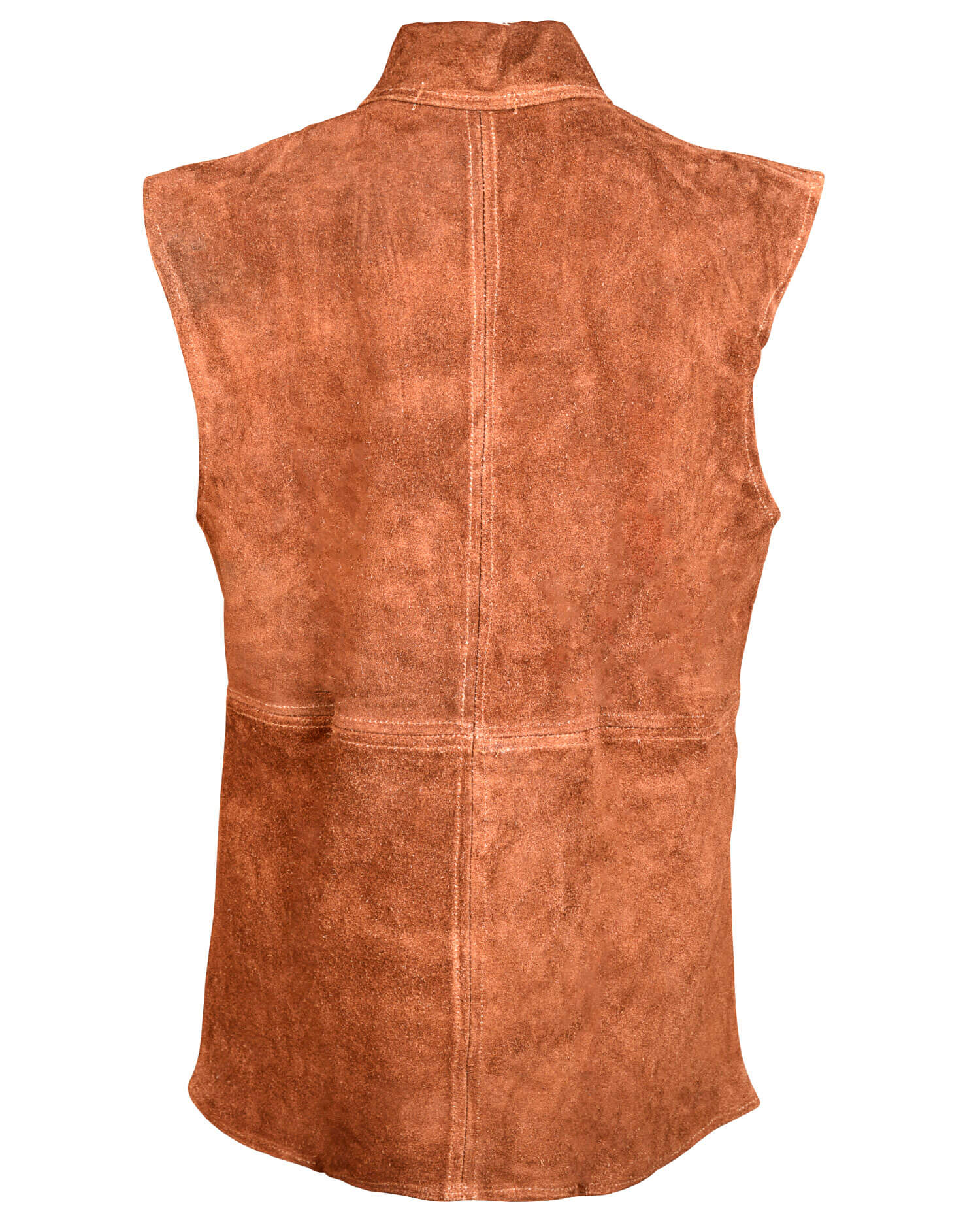 Mittelalterliche Weste aus feinem Wildleder mit Stehkragen. Vor der Brust mit Rollschnallen geschlossen.