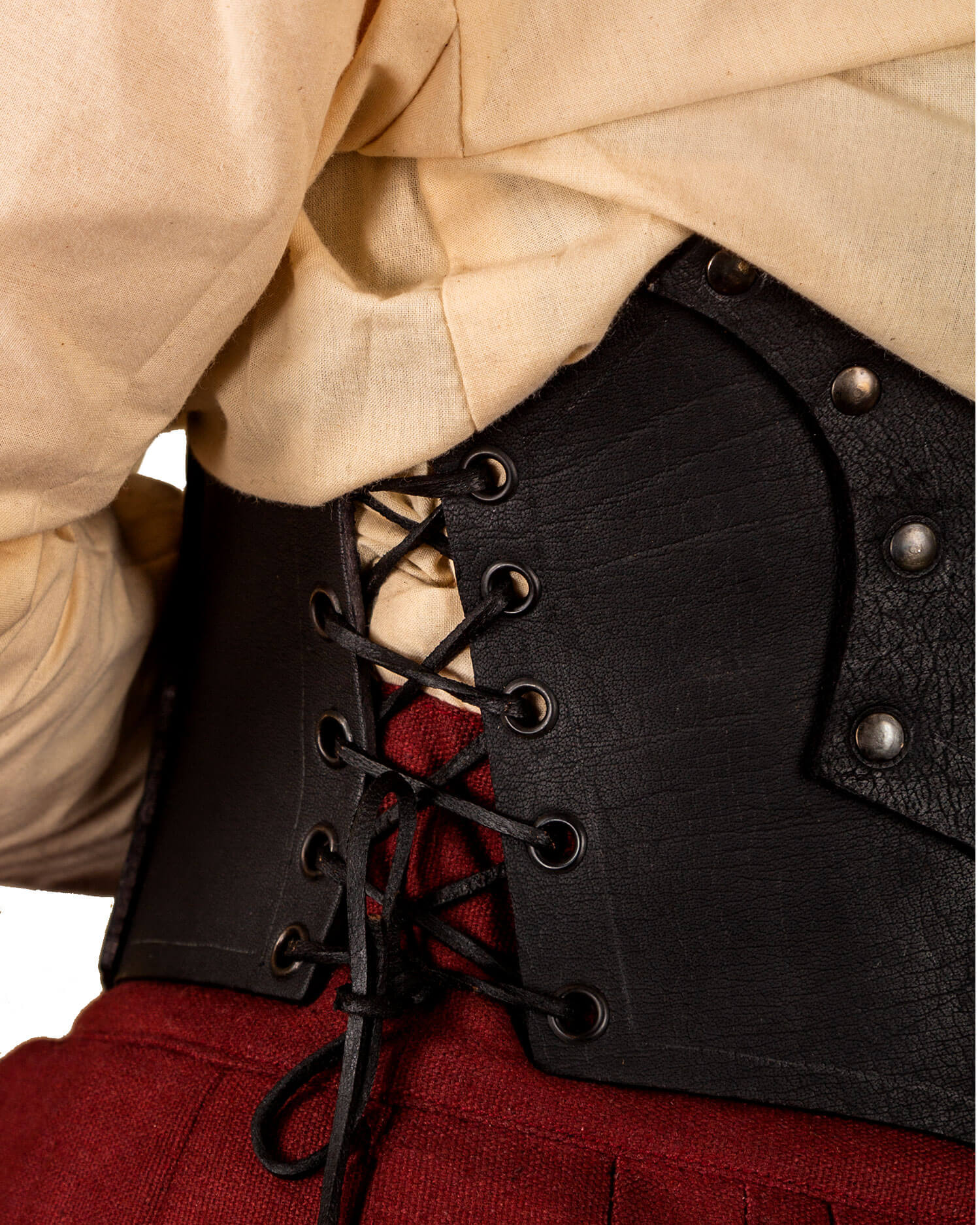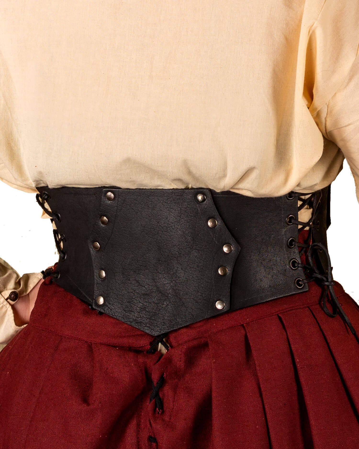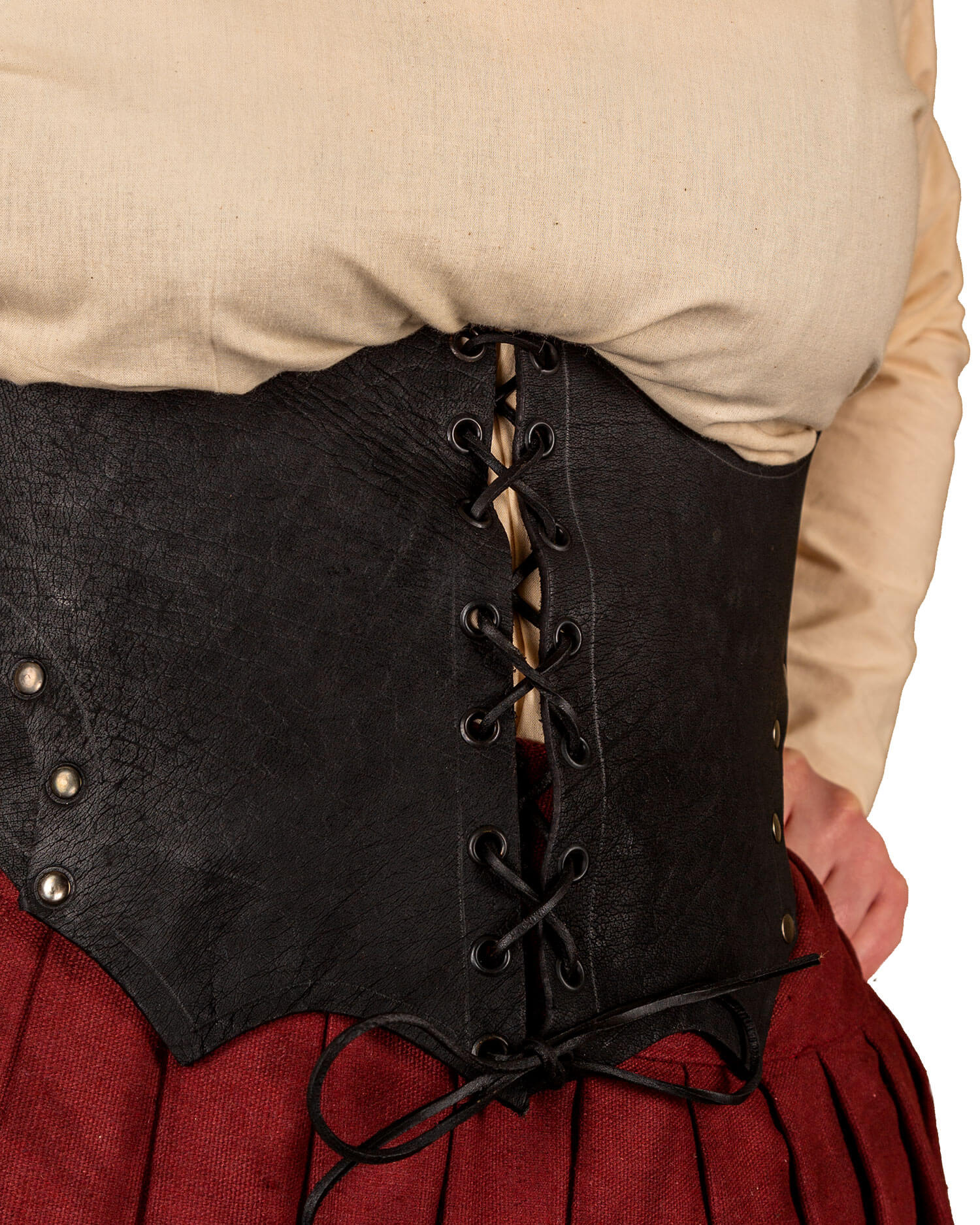 Simple wide ladies' bodice made from robust cowhide upper leather. Adjustable at the front and on both sides by lacing.