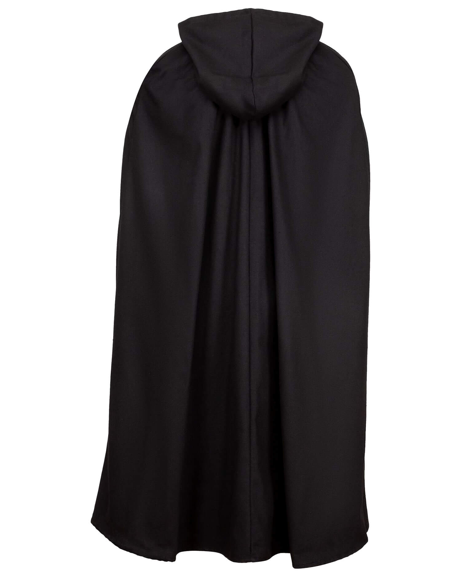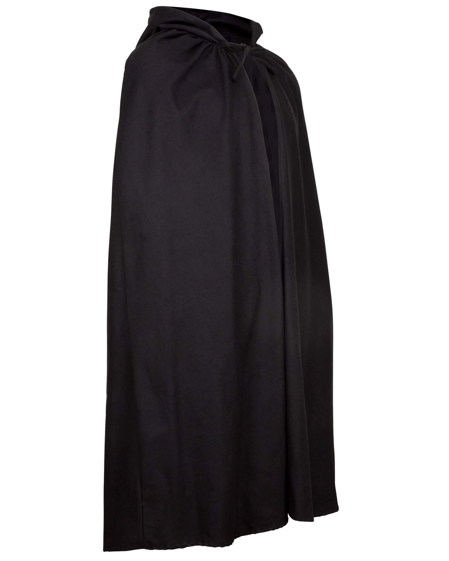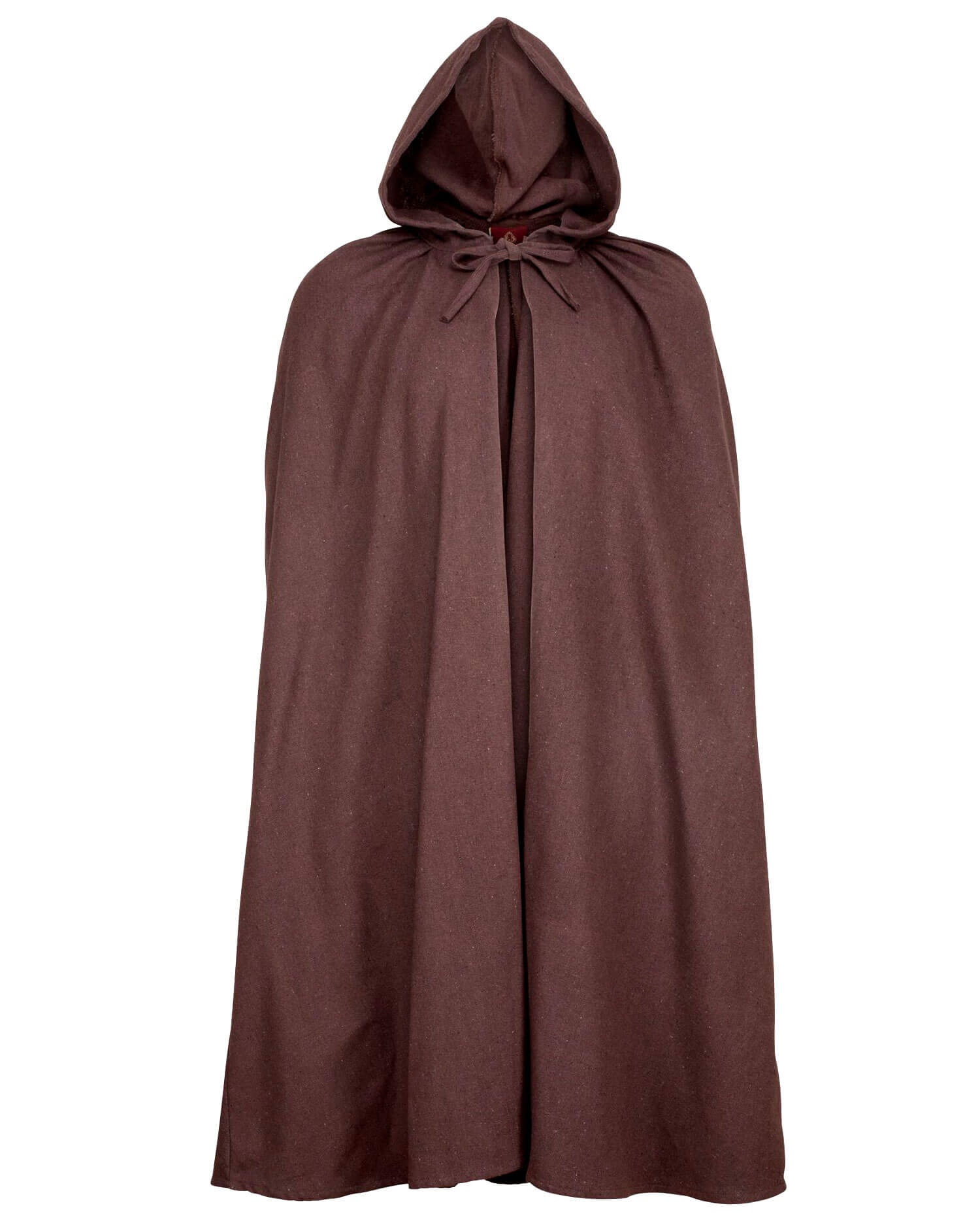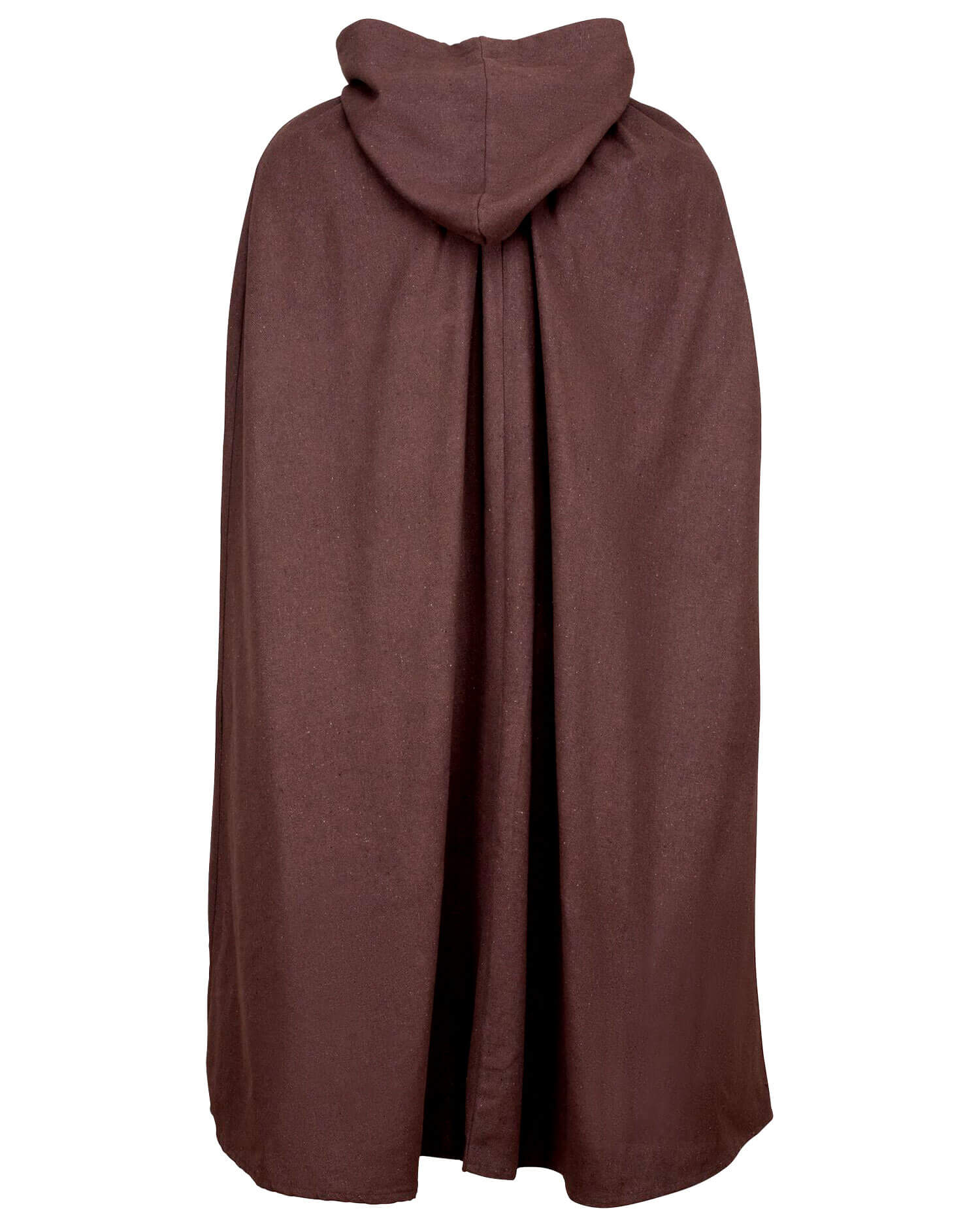 Simply cut medieval cloak that is fastened at the chest with firmly sewn fabric straps.