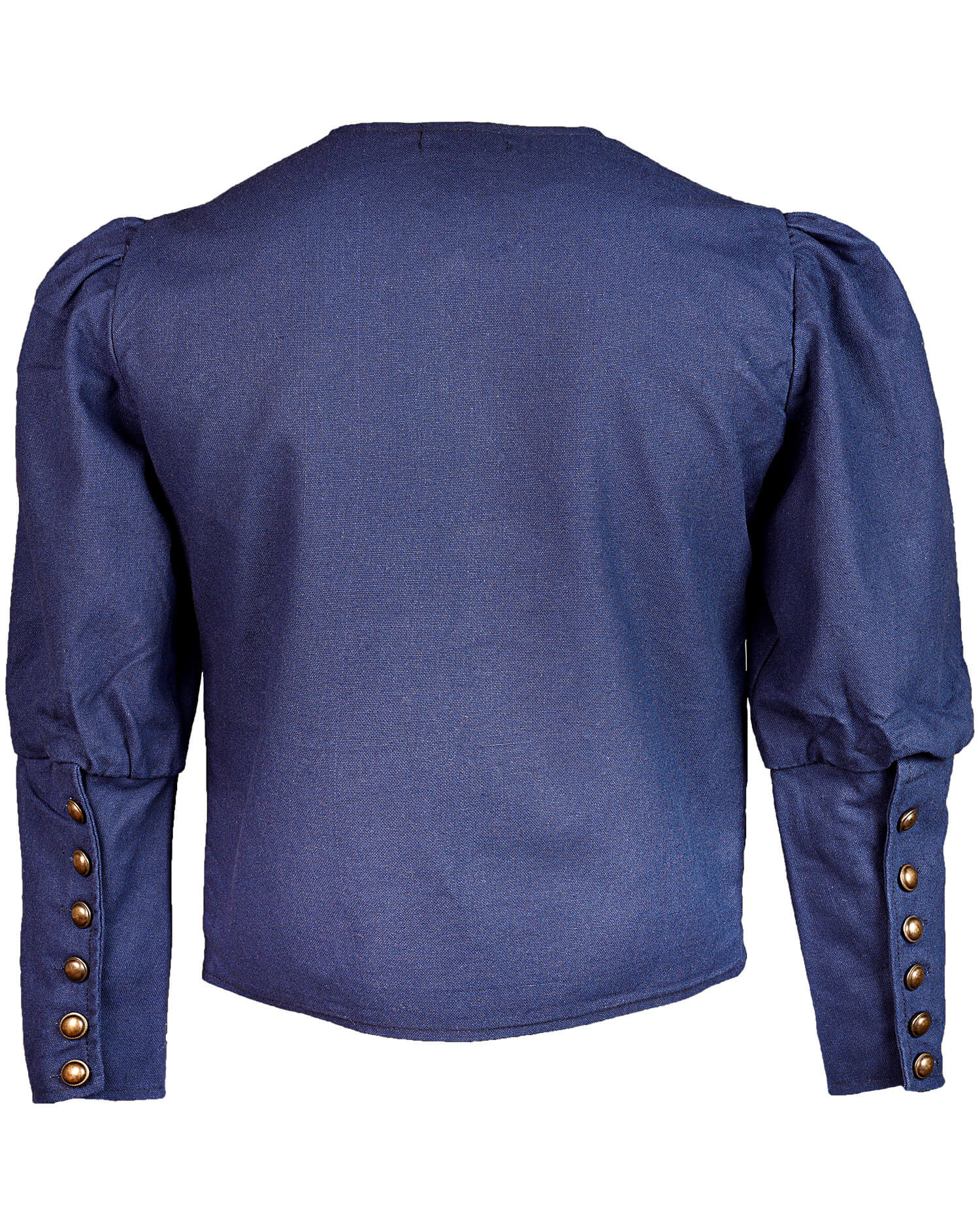 Medieval lined cotton doublet. Fastened at the front with ribbons and at the sleeves with brass buttons.