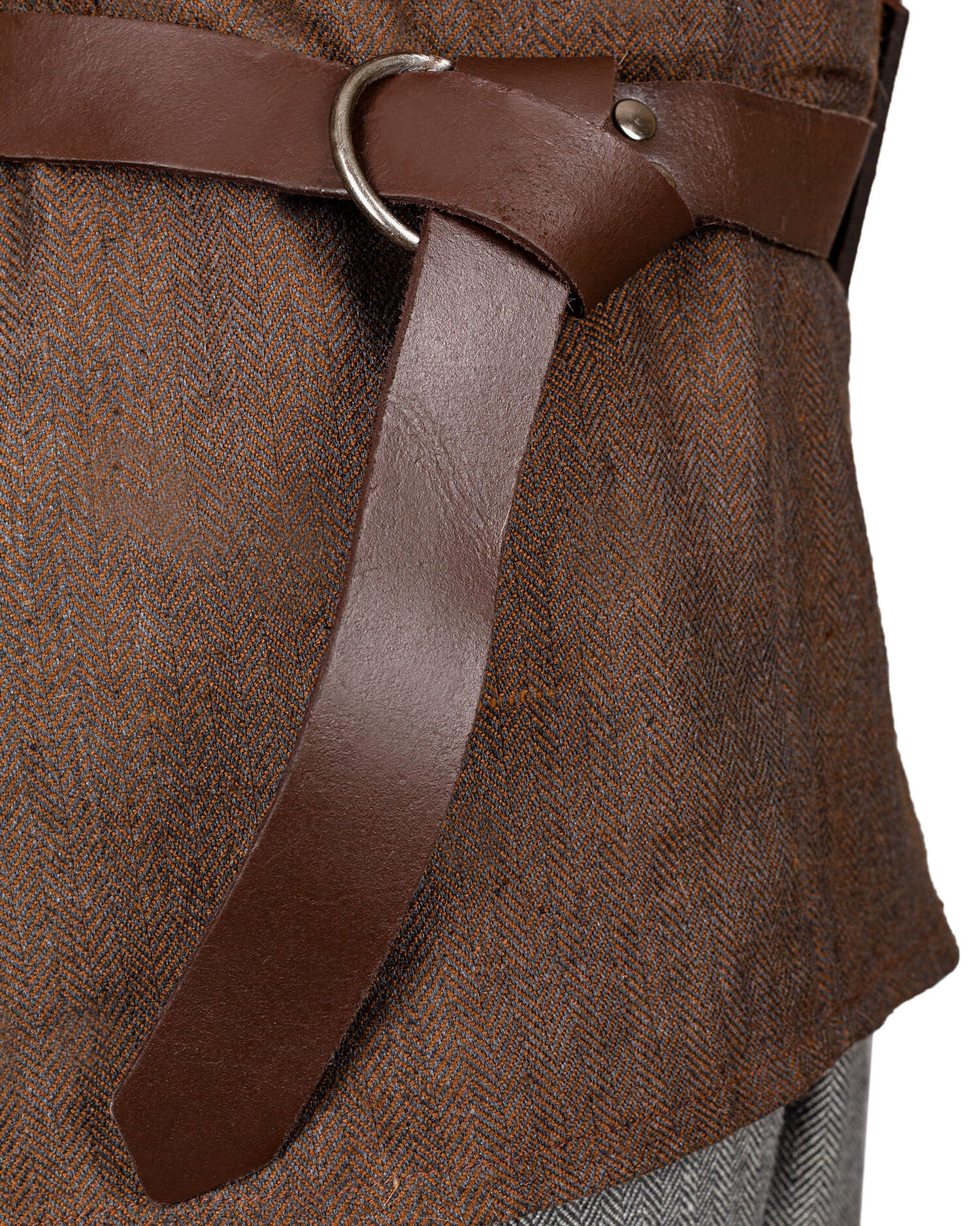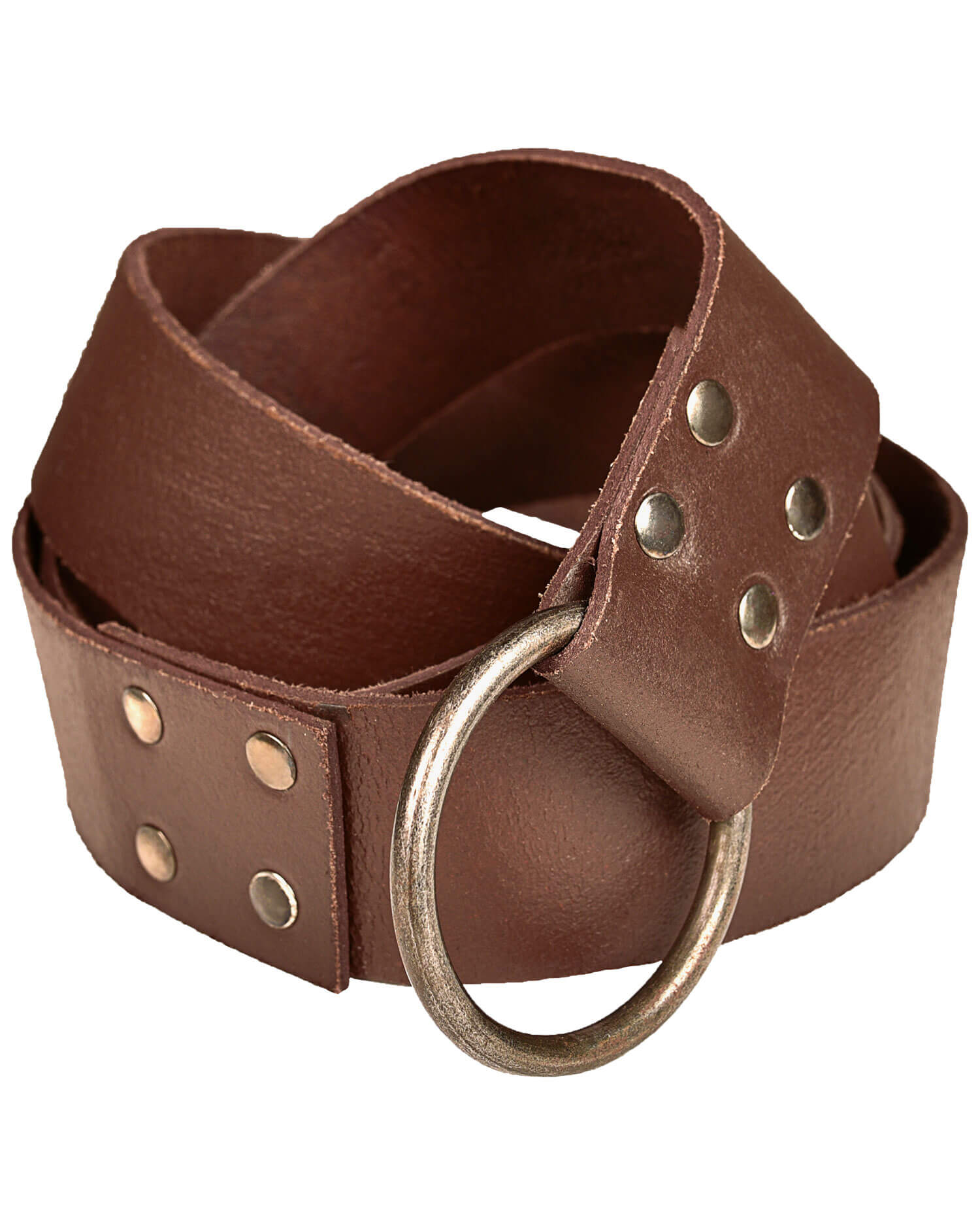 Medieval ring belt that is closed in the so-called ‘medieval knot’ by looping the end of the belt through. This ensures a comfortable fit and the end of the belt points downwards.